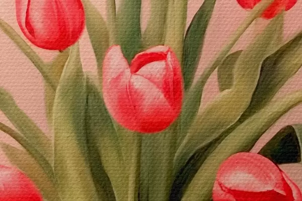 De fijne weving van draden op dit doek lijkt op het oppervlak van professionele schildersdoeken.