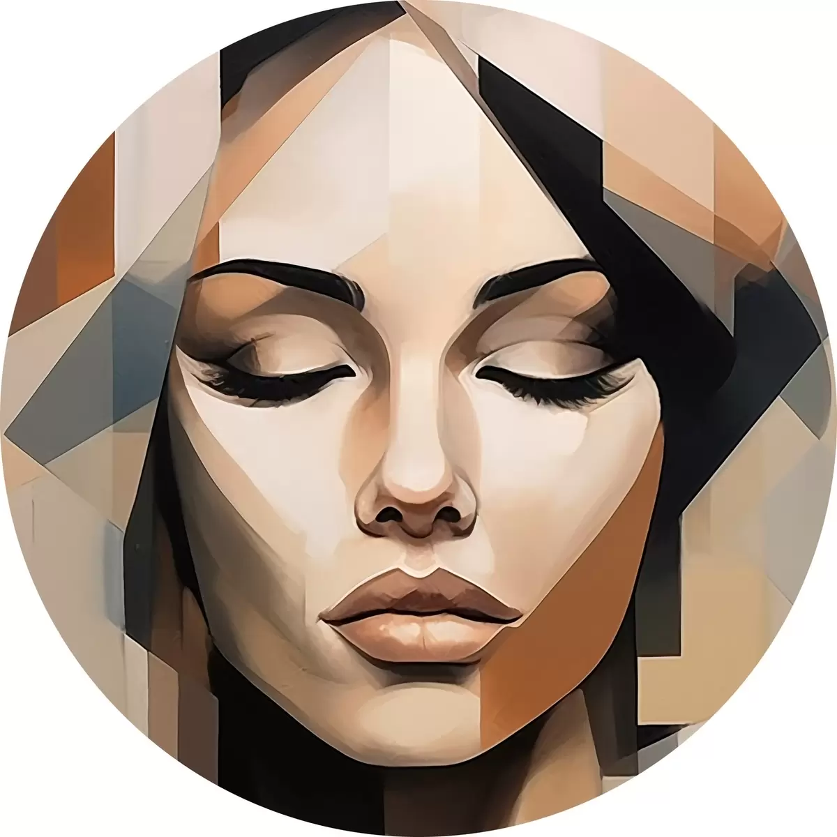 Ronde schilderijen Geometrisch vrouwelijk portret Nr r46220