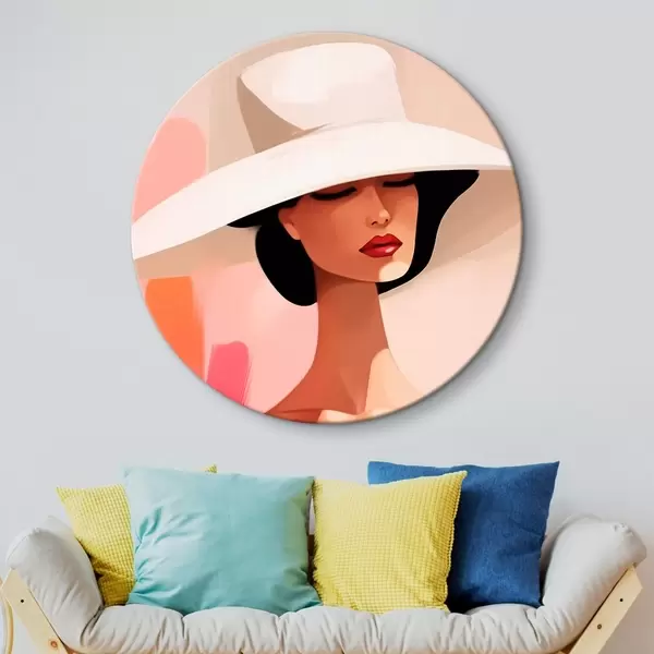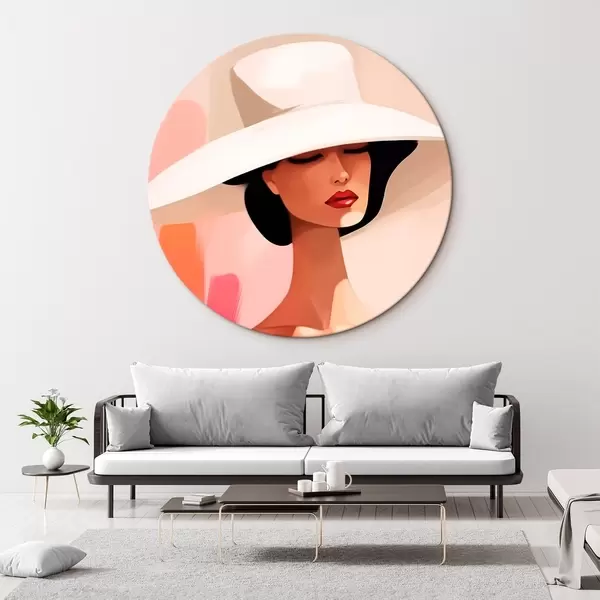 Ronde schilderijen Vrouw met hoed r46229