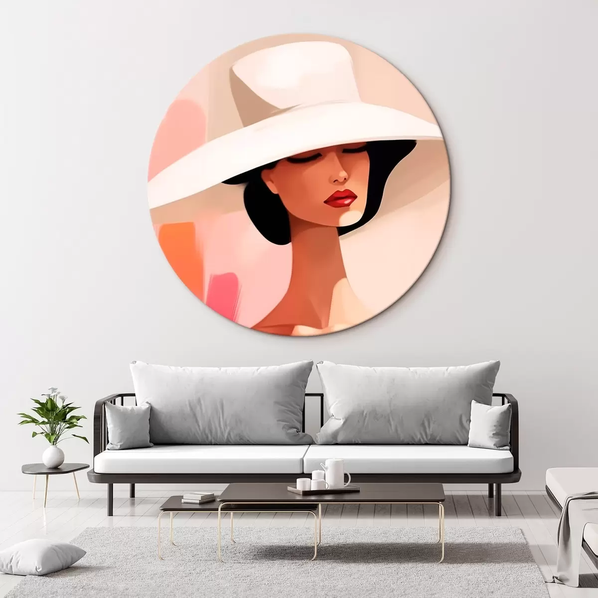 Ronde schilderijen Vrouw met hoed Nr r46229
