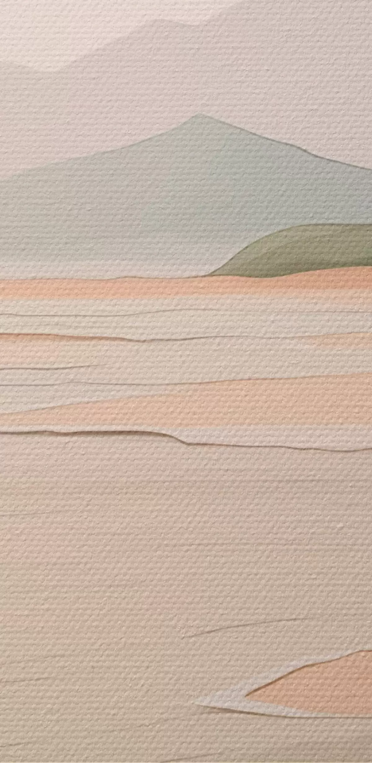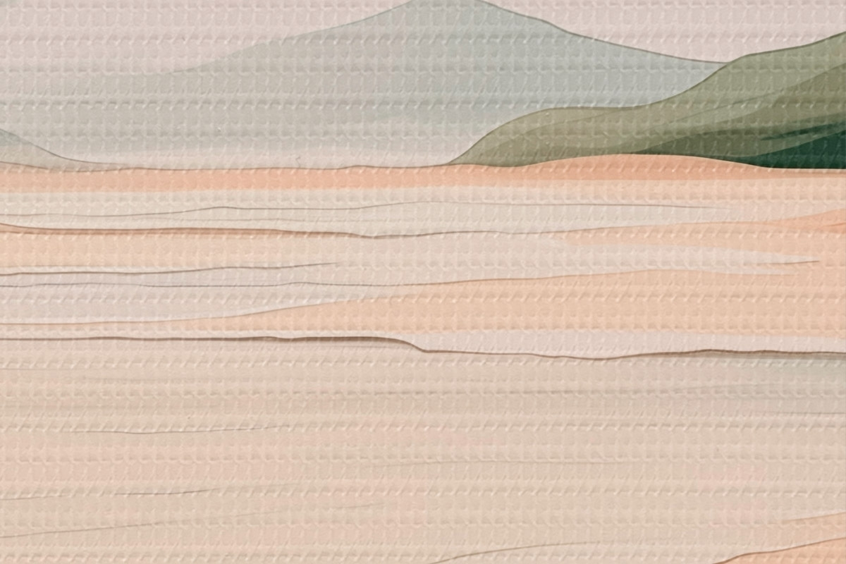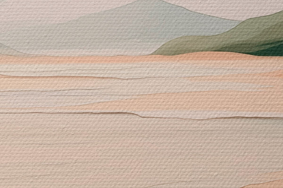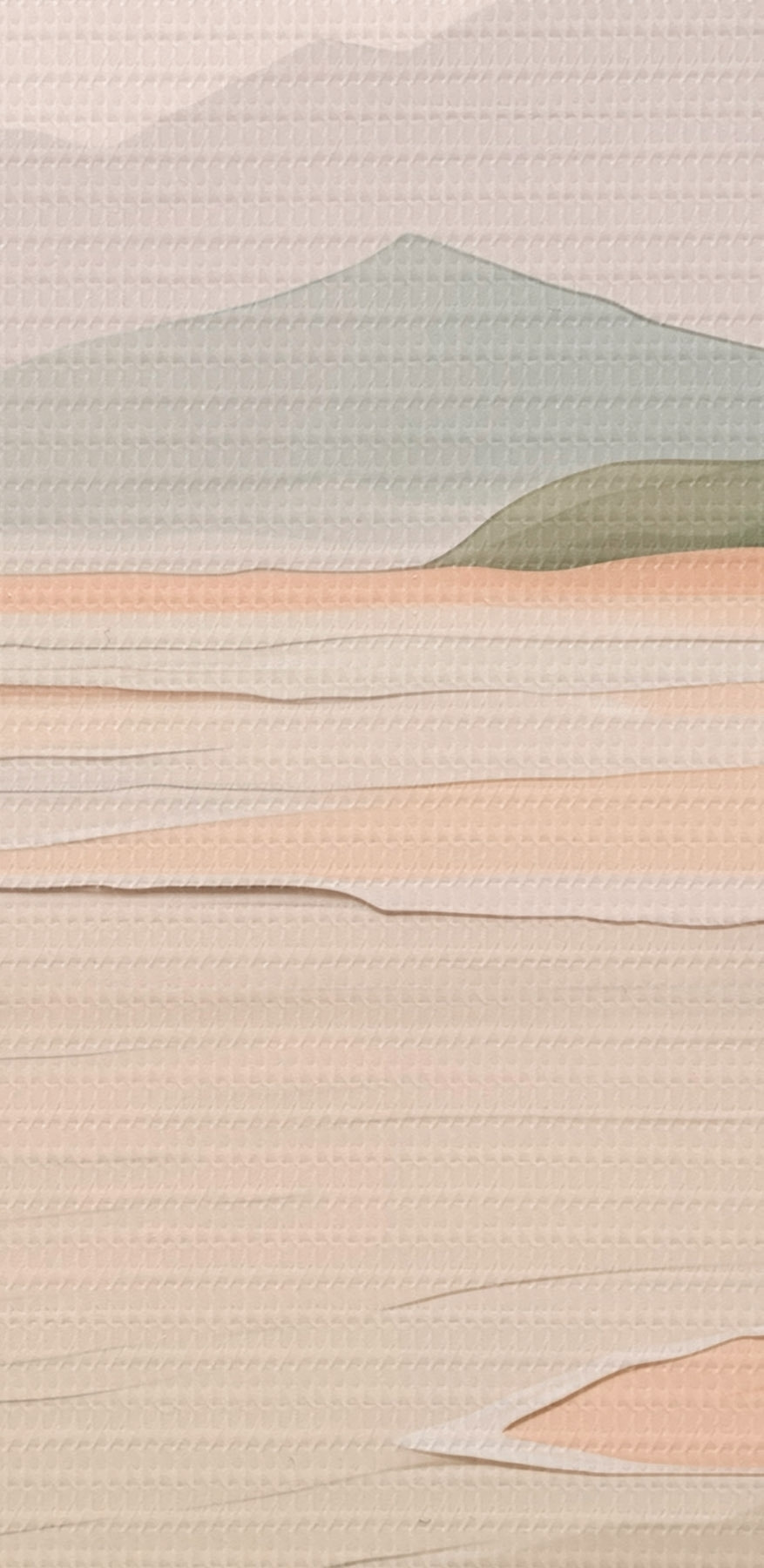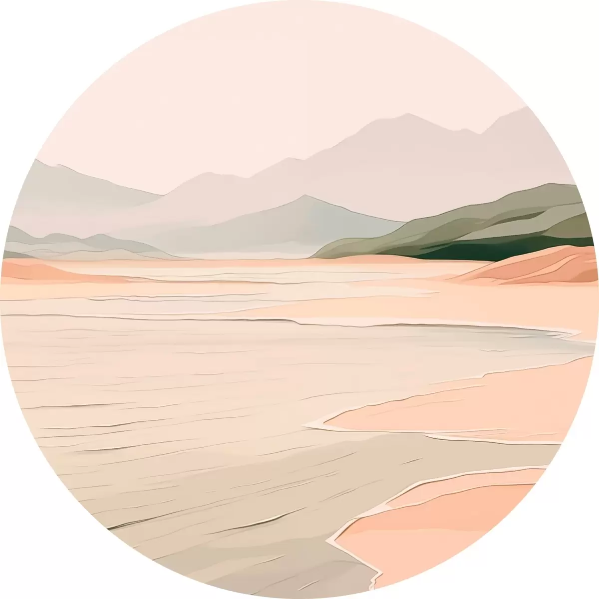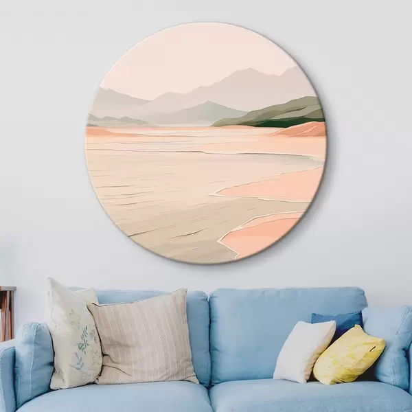Ronde schilderijen Minimalistisch landschap met bergen en kust Nr r46248