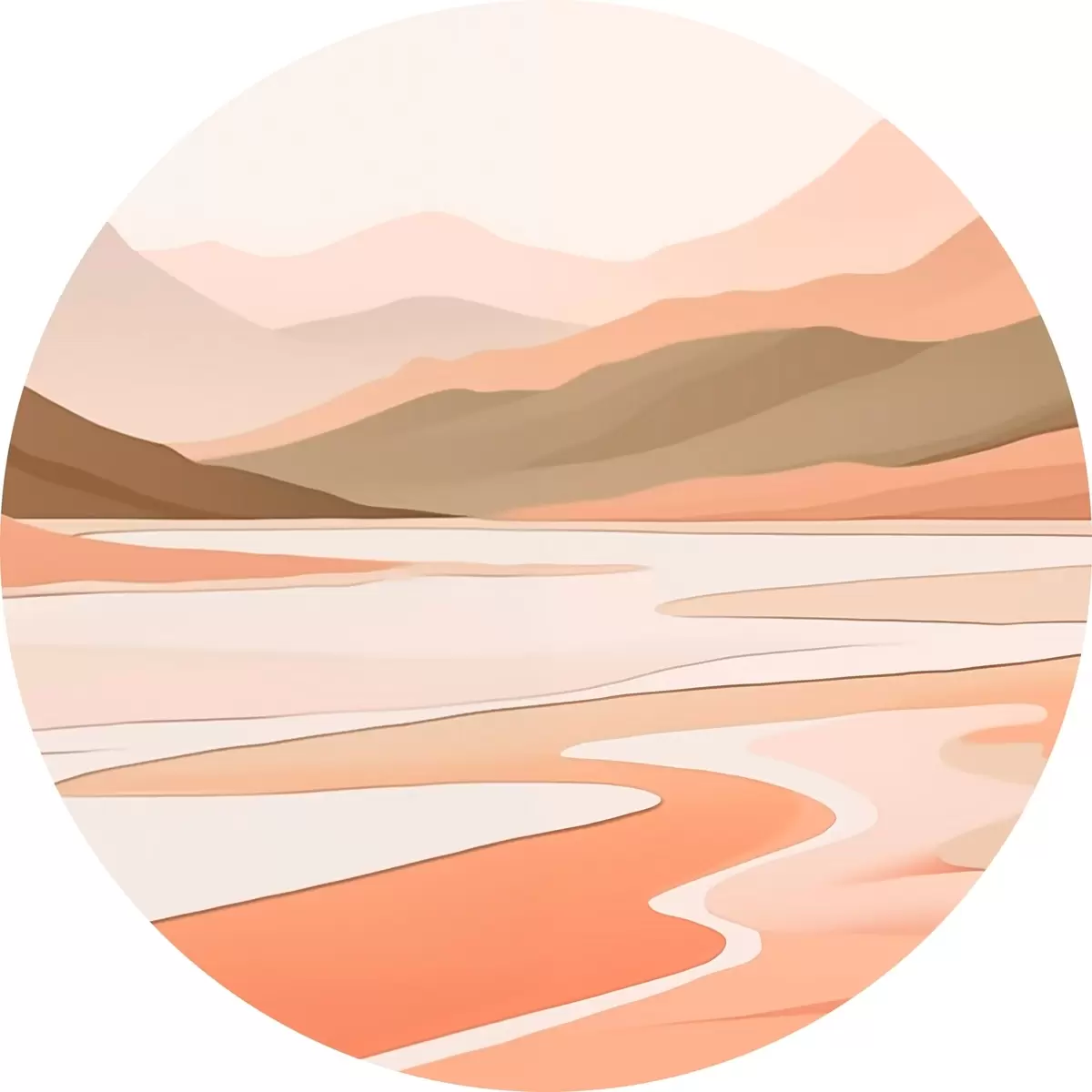 Ronde schilderijen Abstract landschap met bergen en rivier Nr r46249