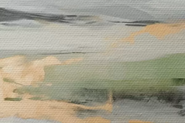 De fijne weving van draden op dit doek lijkt op het oppervlak van professionele schildersdoeken.