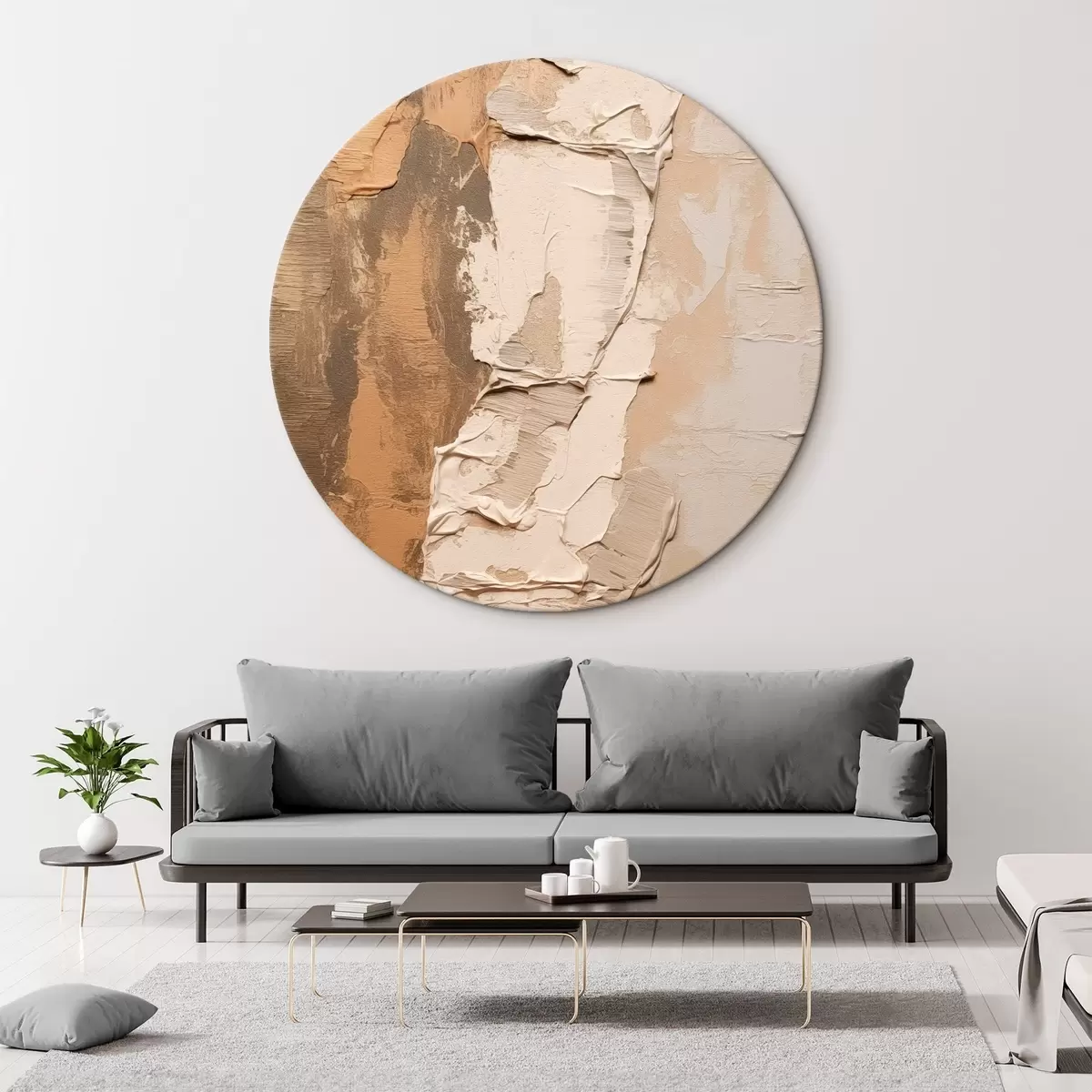 Ronde schilderijen Abstract schilderij met dikke penseelstreken, beige en bruine tinten, gestructureerd oppervlak, neutraal kleurenpalet Nr r46272