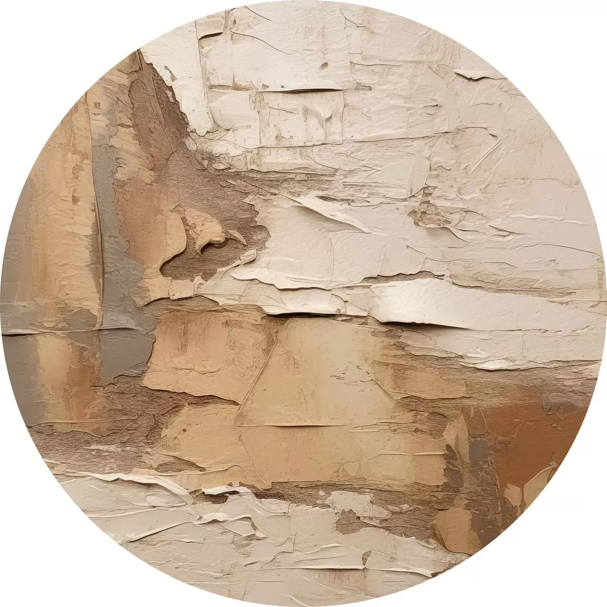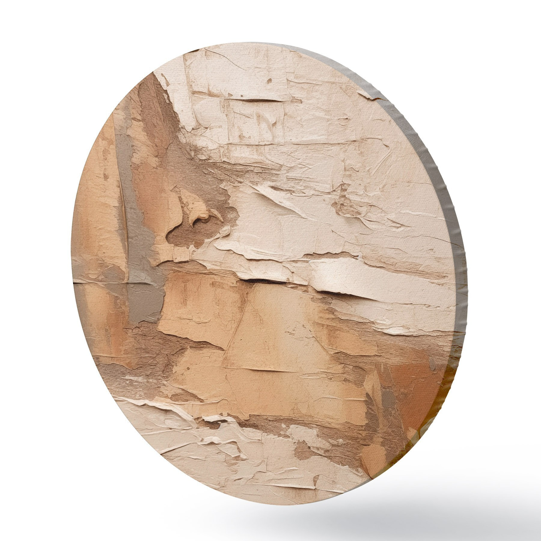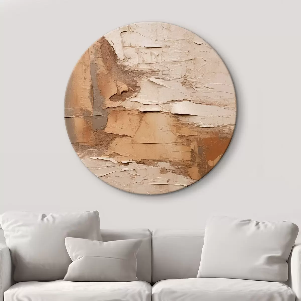 Ronde schilderijen Abstract schilderij met dikke penseelstreken, beige en bruine tinten, gestructureerd oppervlak, neutraal kleurenpalet Nr r46273