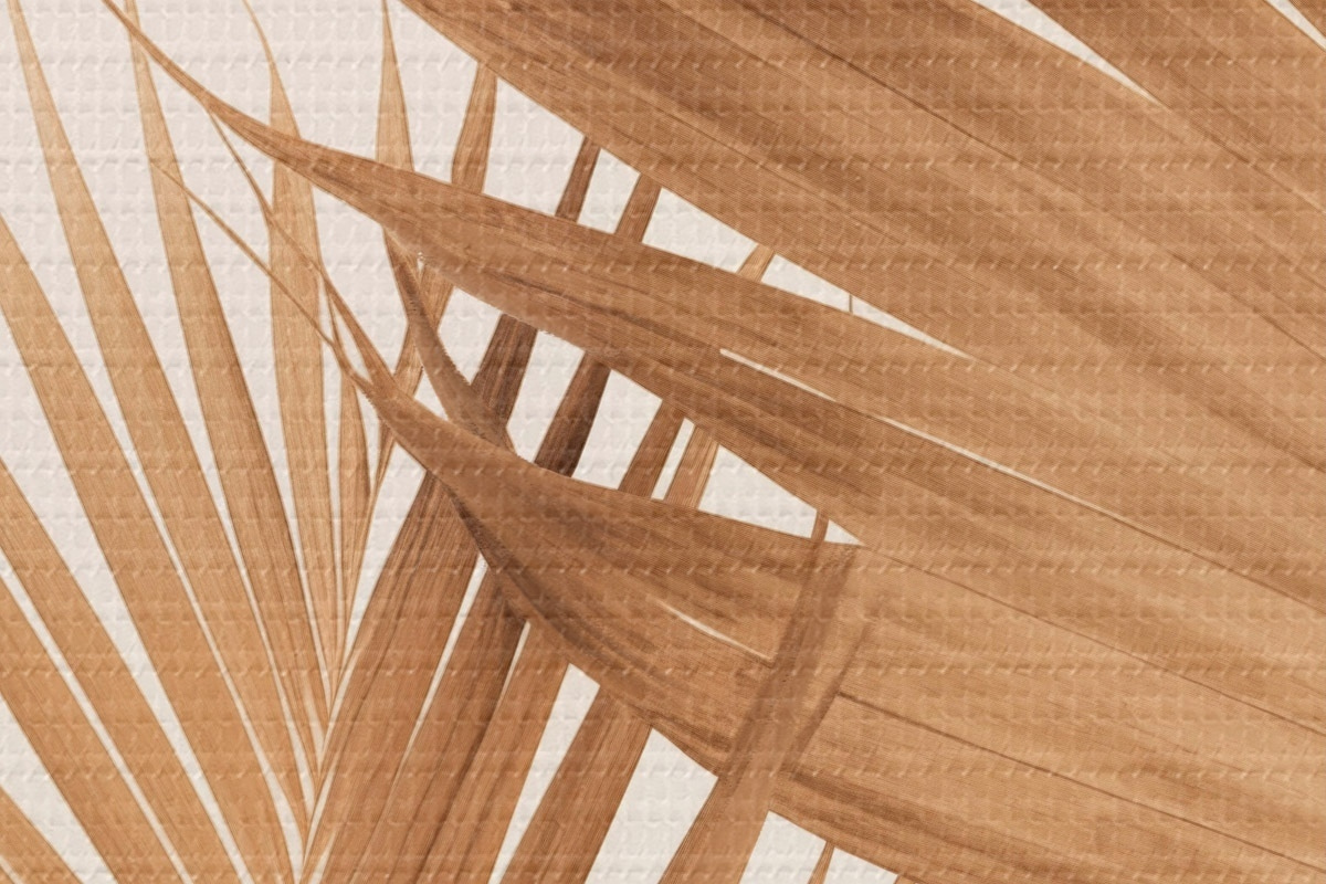 Ronde schilderijen Palmbladeren in bruine tinten, neutrale achtergrond, minimalistische stijl, natuurlijke belichting, tropische sfeer r46274