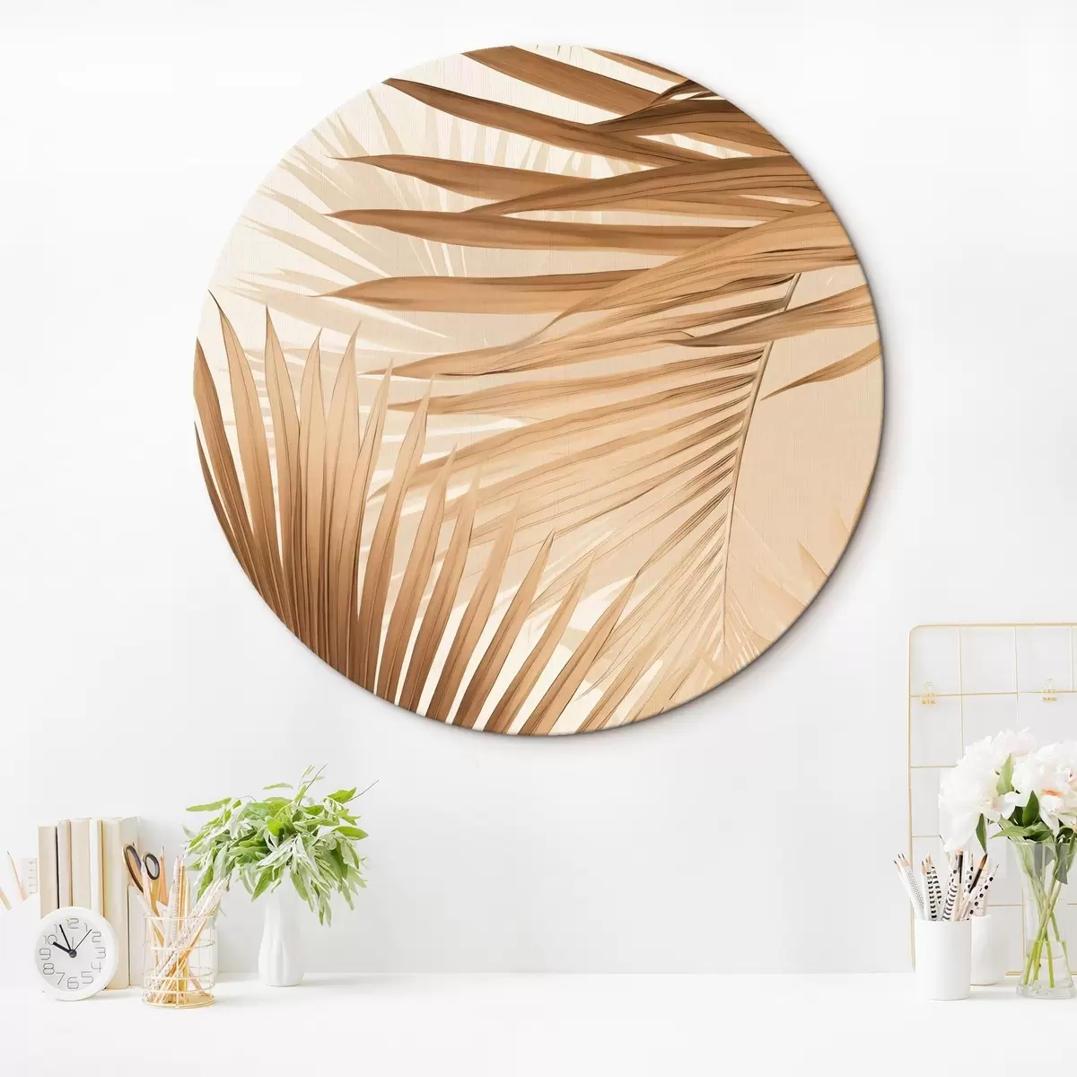 Ronde schilderijen Abstracte palmbladeren in bruine tinten, tropisch, botanisch, natuur, minimalistisch, elegant, modern design Nr r46275