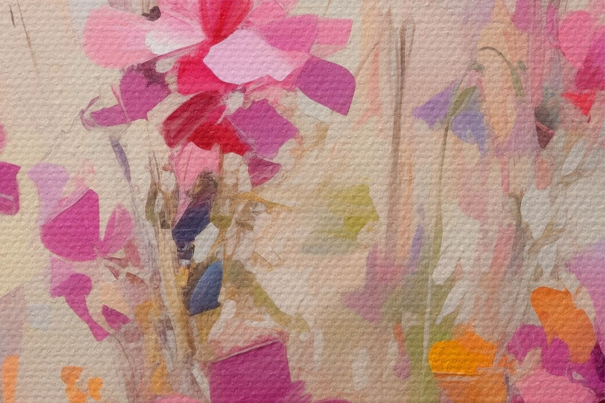 Het schilderij kan direct na ontvangst worden opgehangen. Het schilderij wordt opgespannen op een 2 cm breed houten spieraam.