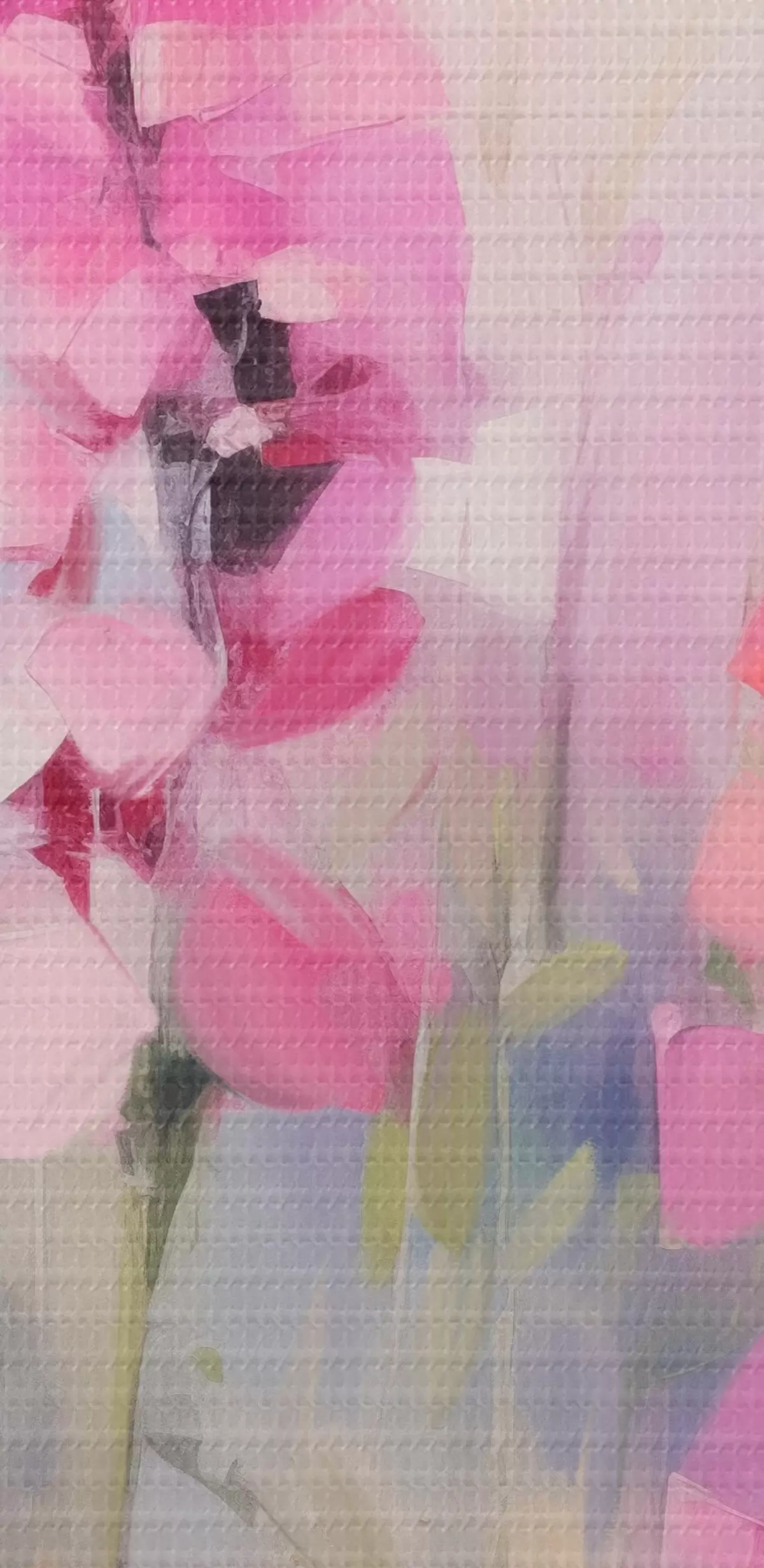 Het schilderij kan direct na ontvangst worden opgehangen. Het schilderij wordt opgespannen op een 2 cm breed houten spieraam.