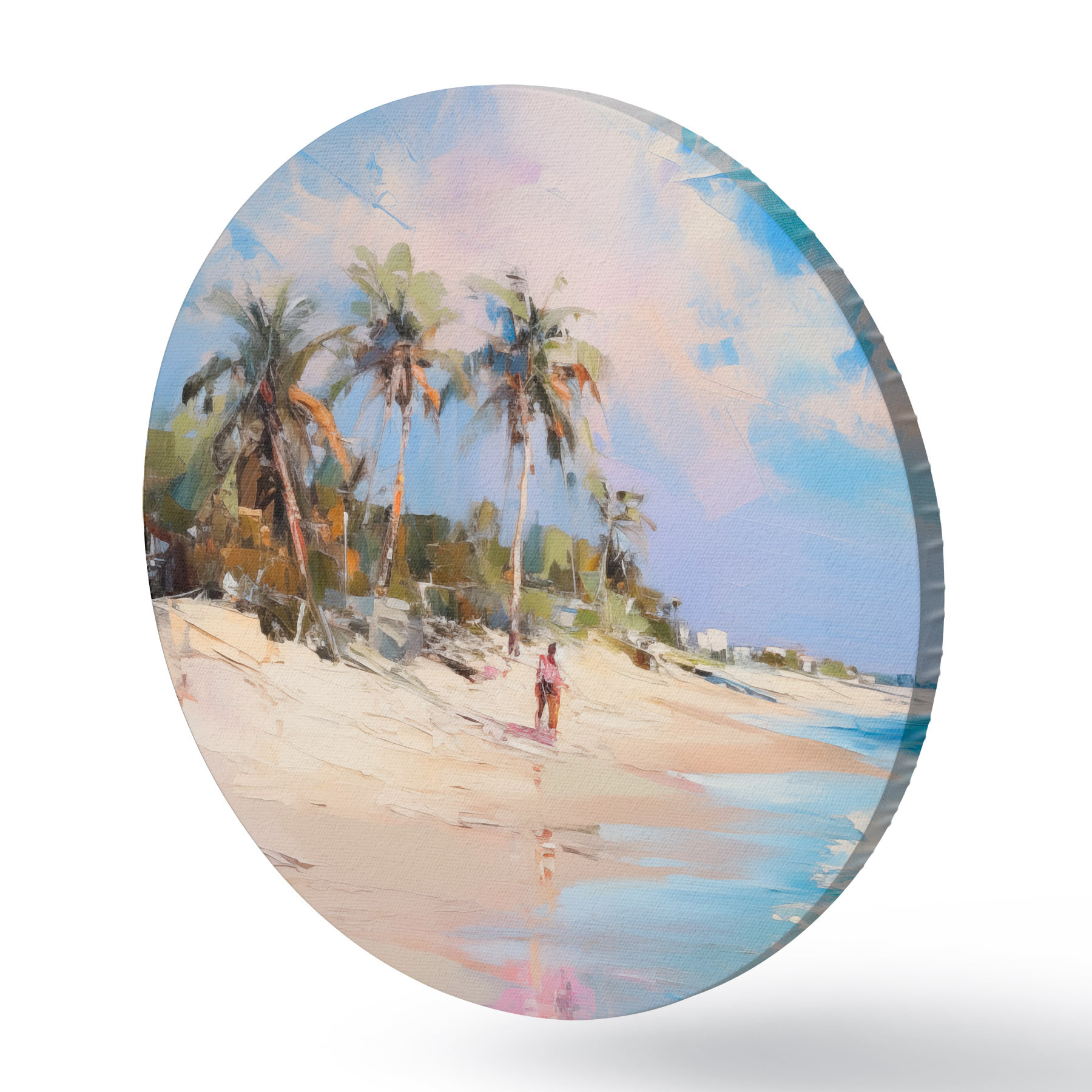 Ronde schilderijen Abstract landschap, een strand met palmbomen, heldere zonnige dag met een blauwe lucht en enkele wolken r46284