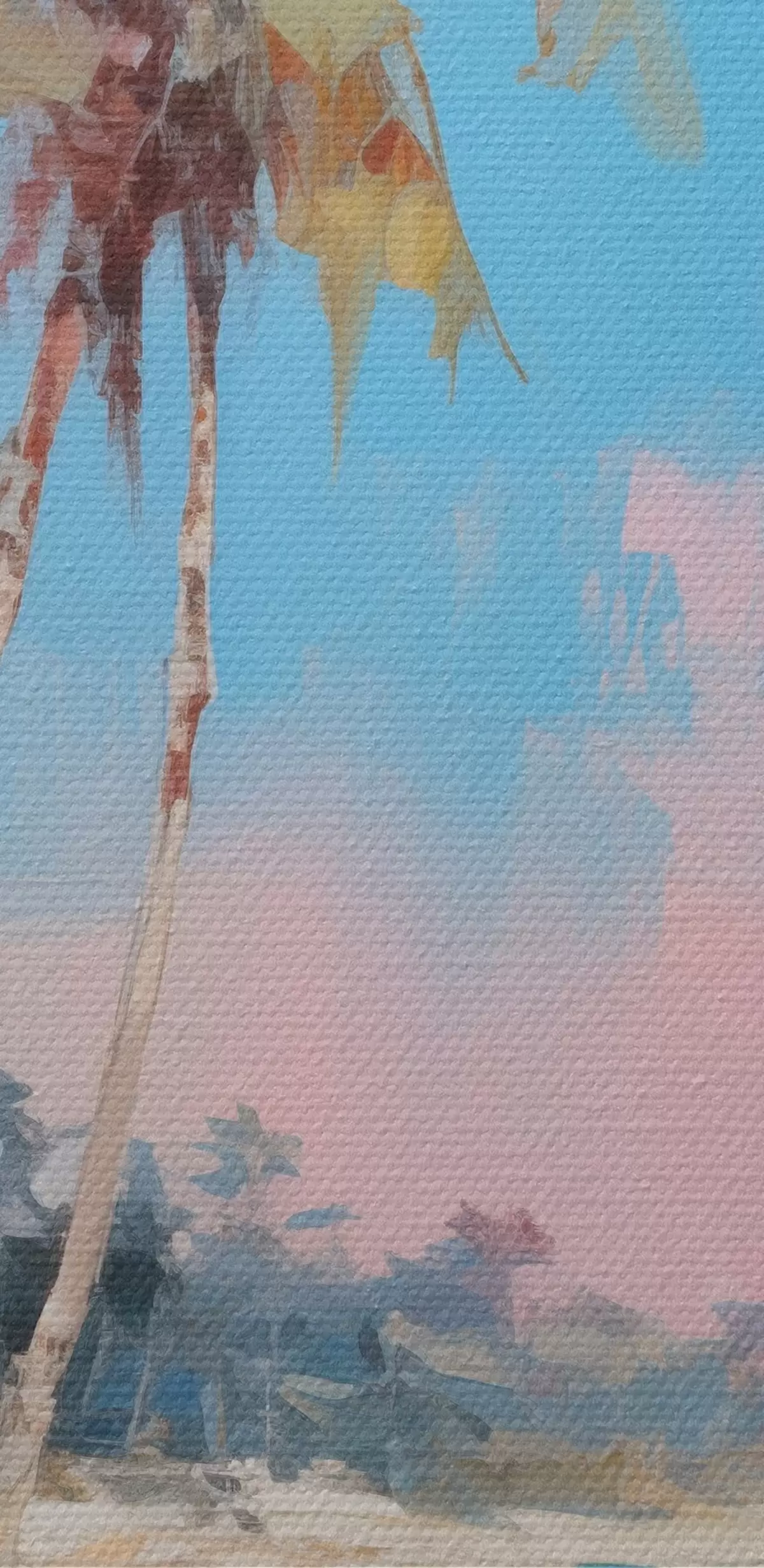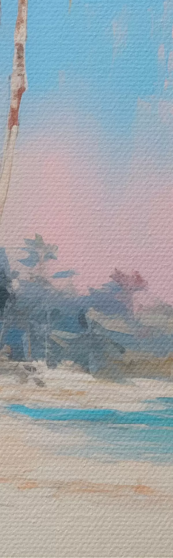 Het schilderij kan direct na ontvangst worden opgehangen. Het schilderij wordt opgespannen op een 2 cm breed houten spieraam.