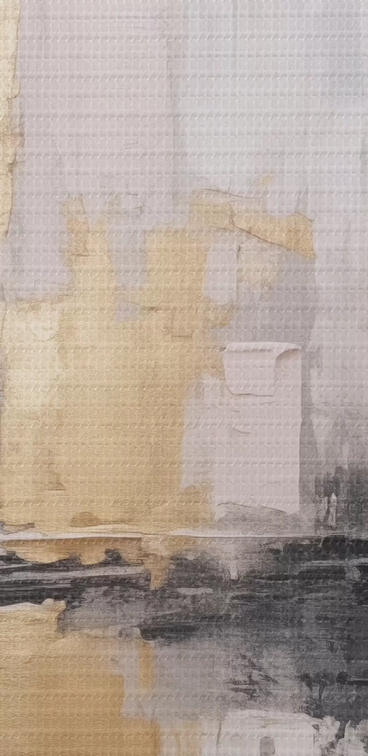De fijne weving van draden op dit doek lijkt op het oppervlak van professionele schildersdoeken.