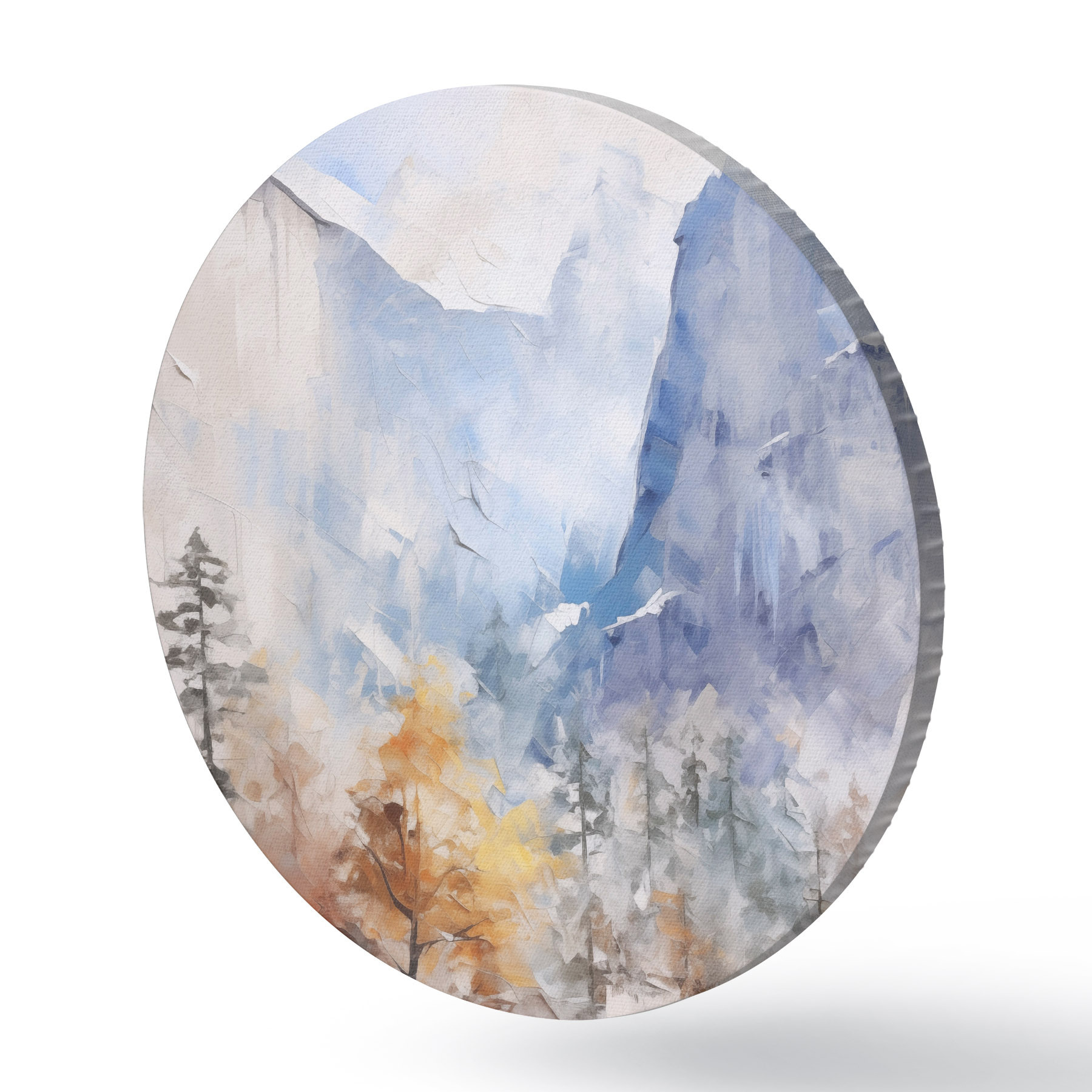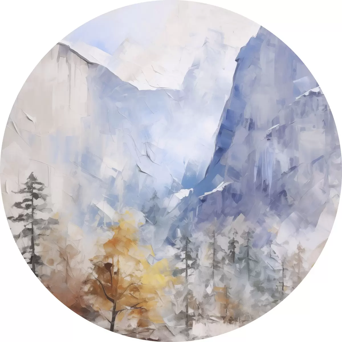 Ronde schilderijen Abstract landschap van bos voor bergen Nr r46298