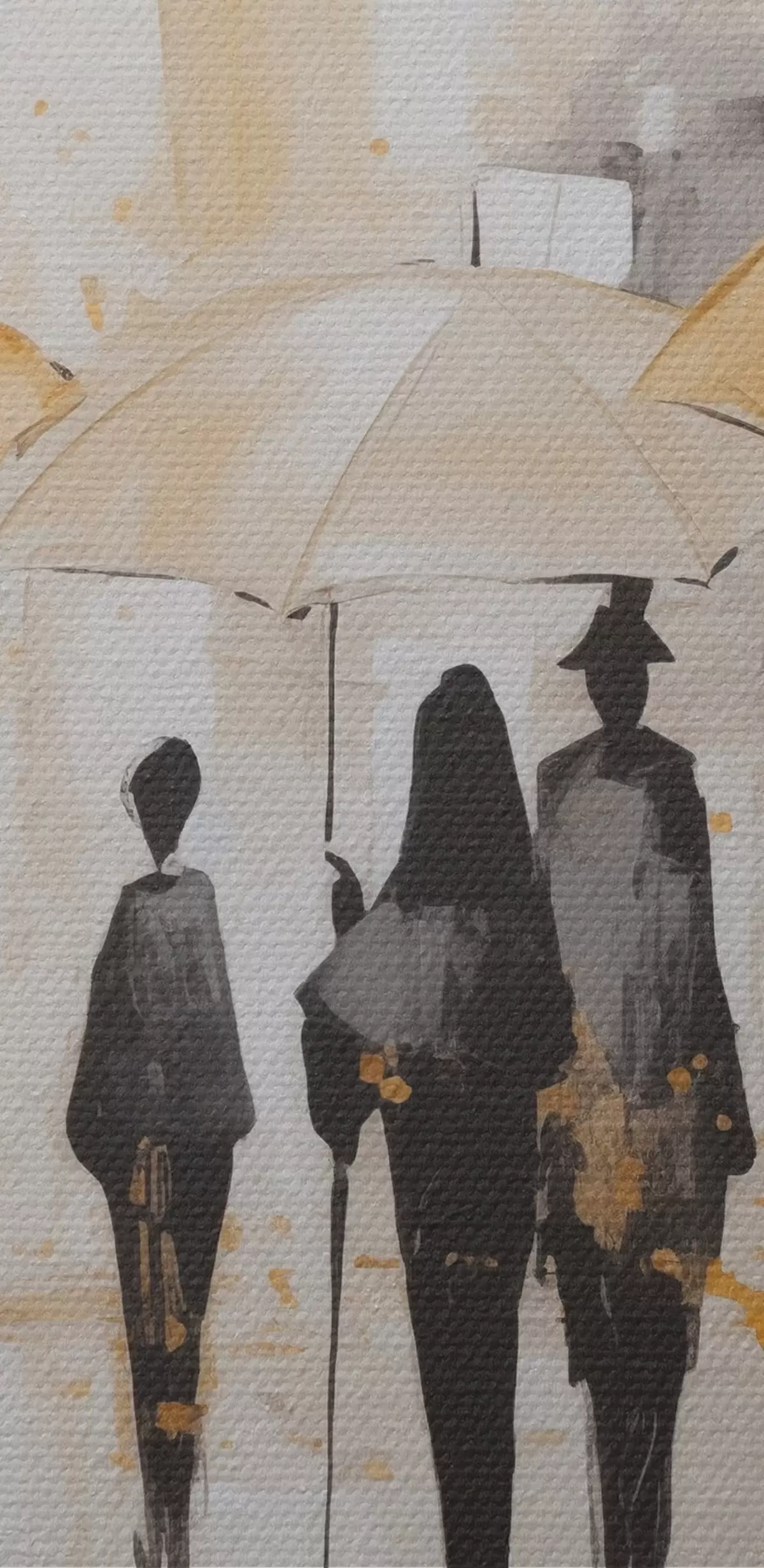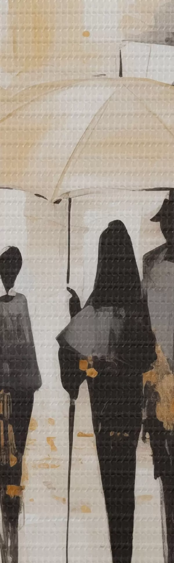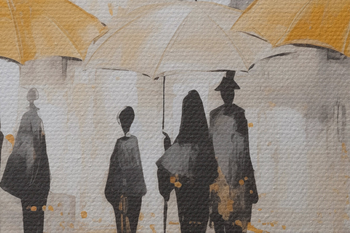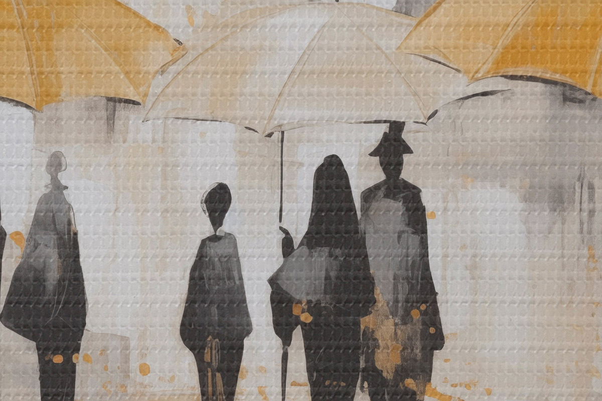 Ronde schilderijen Abstractie van mensen met paraplu's Nr r46304