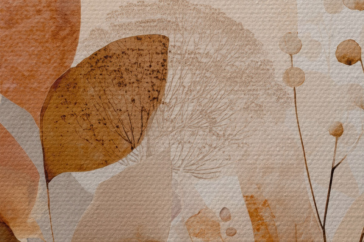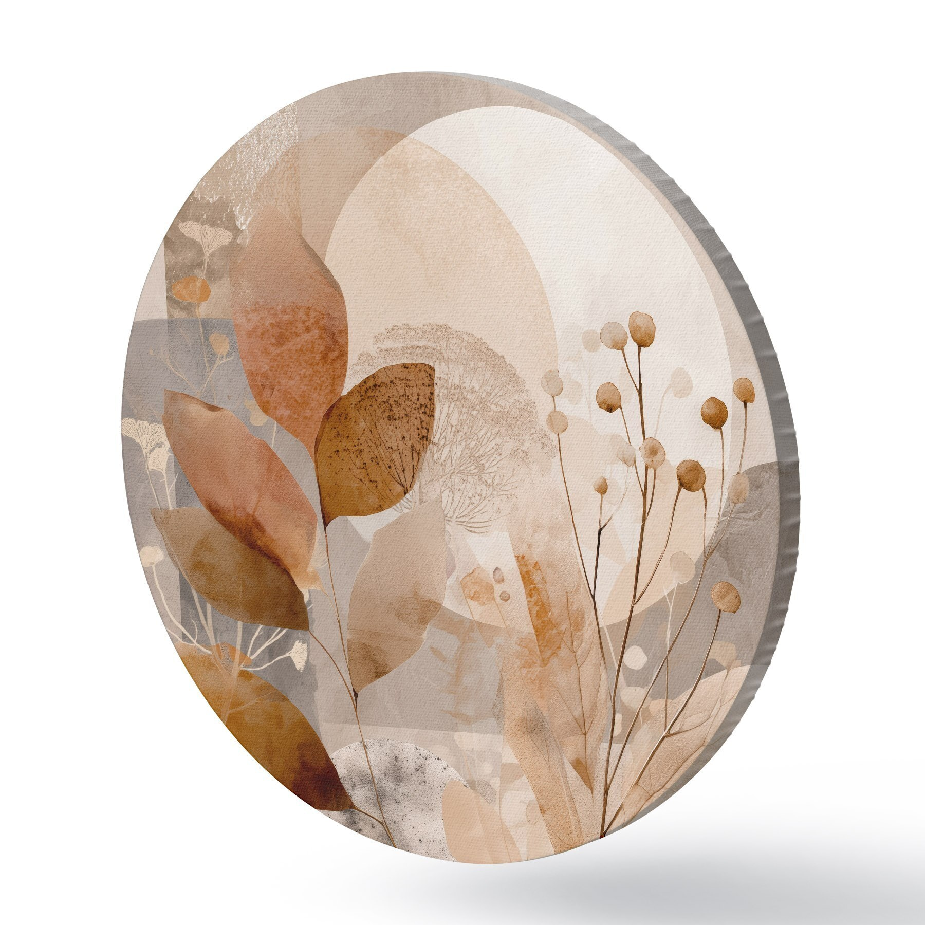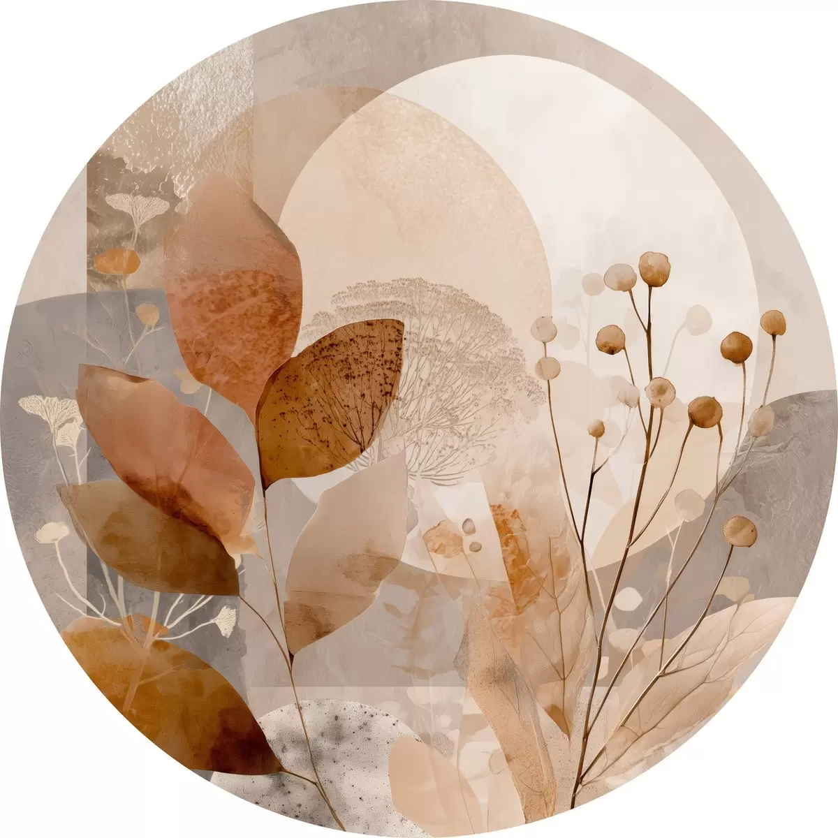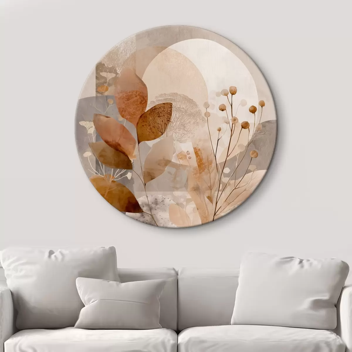 Ronde schilderijen Bloemenpatroon in beige en bruin Nr r46308