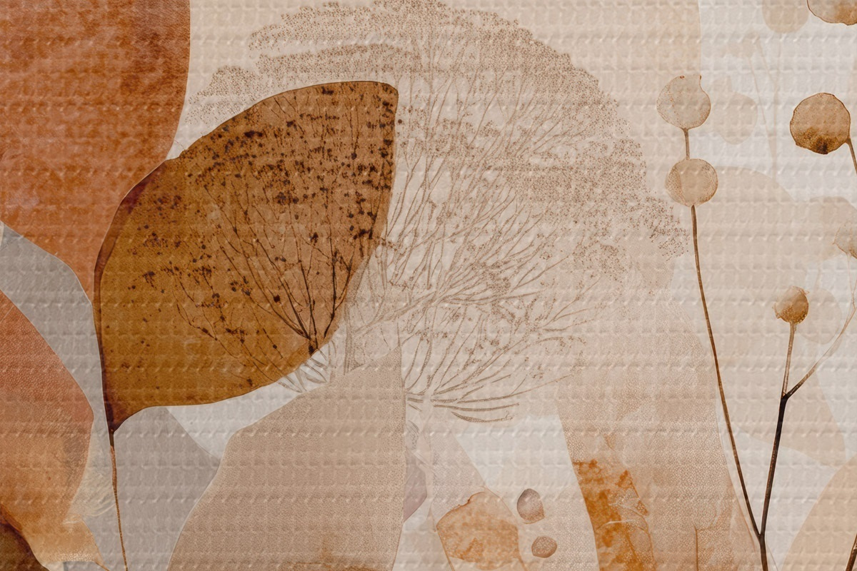 Ronde schilderijen Bloemenpatroon in beige en bruin r46308