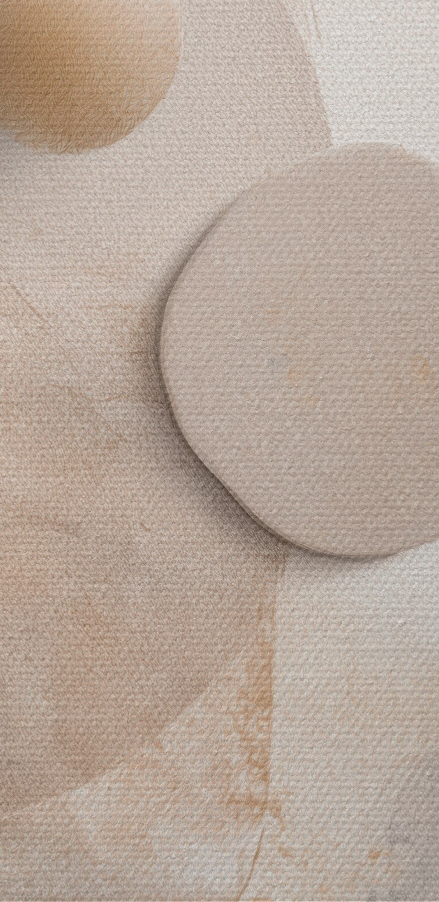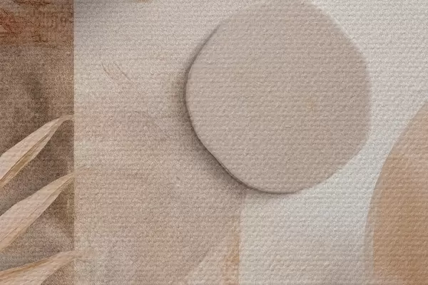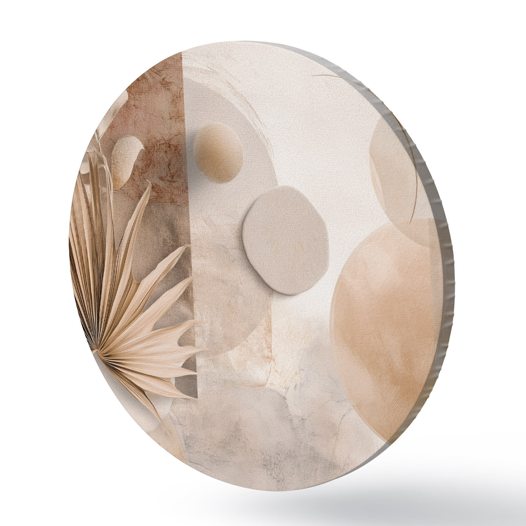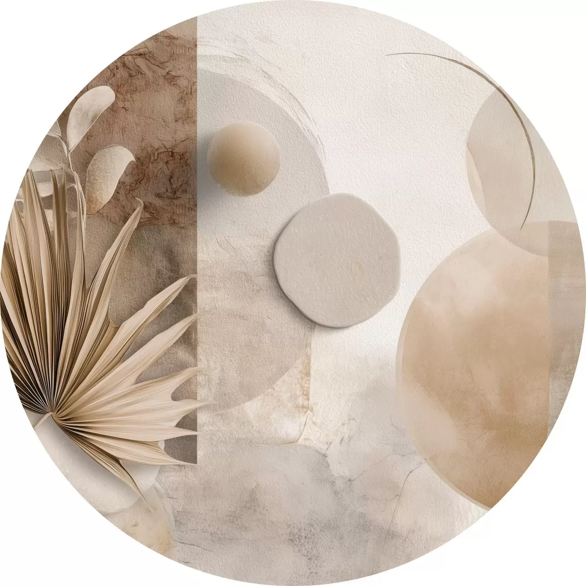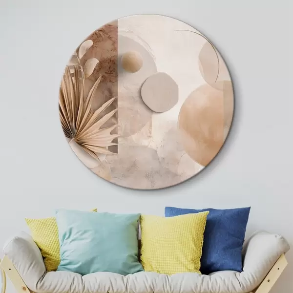 Ronde schilderijen Gedroogde palmbladeren en 3D-cirkels in beige tinten Nr r46310