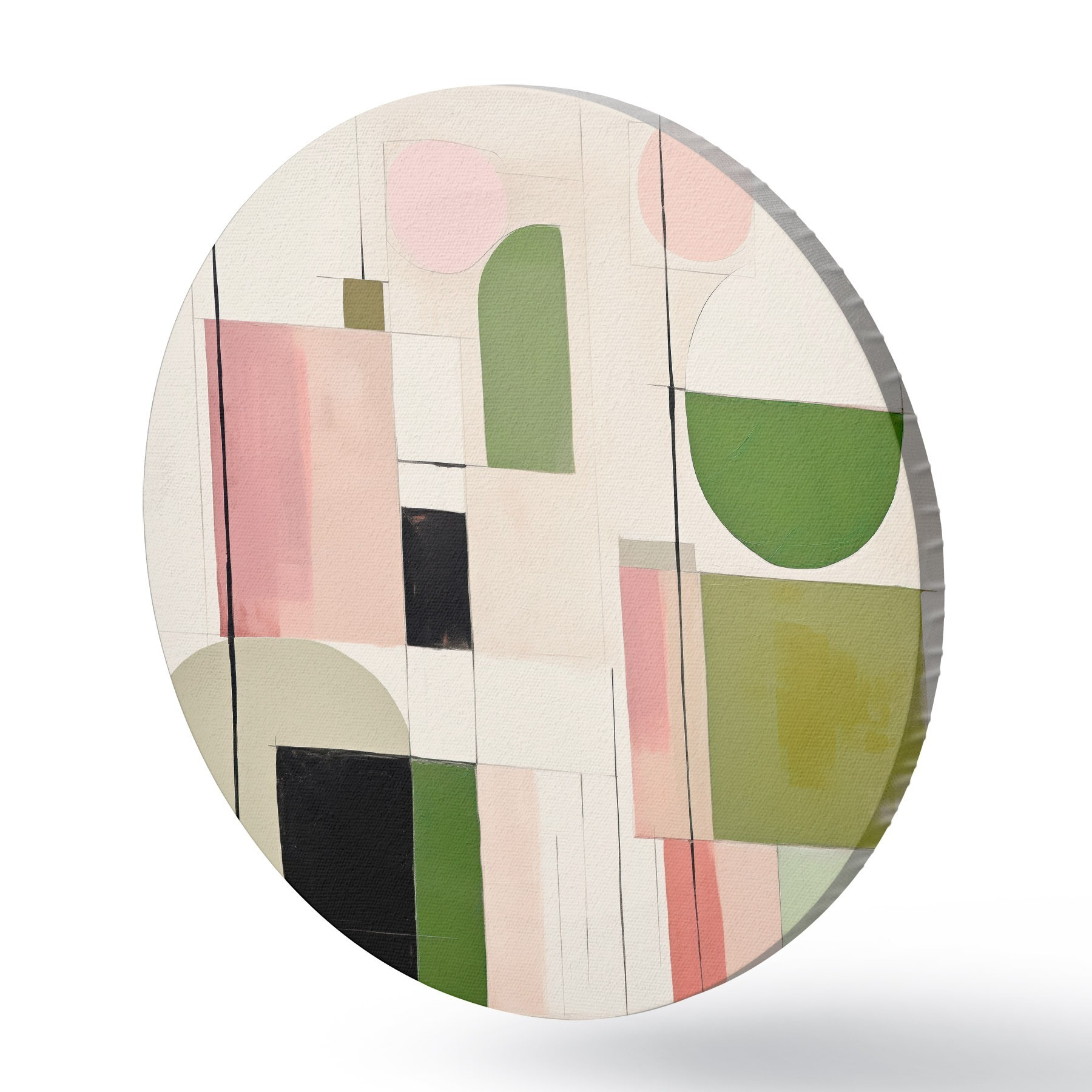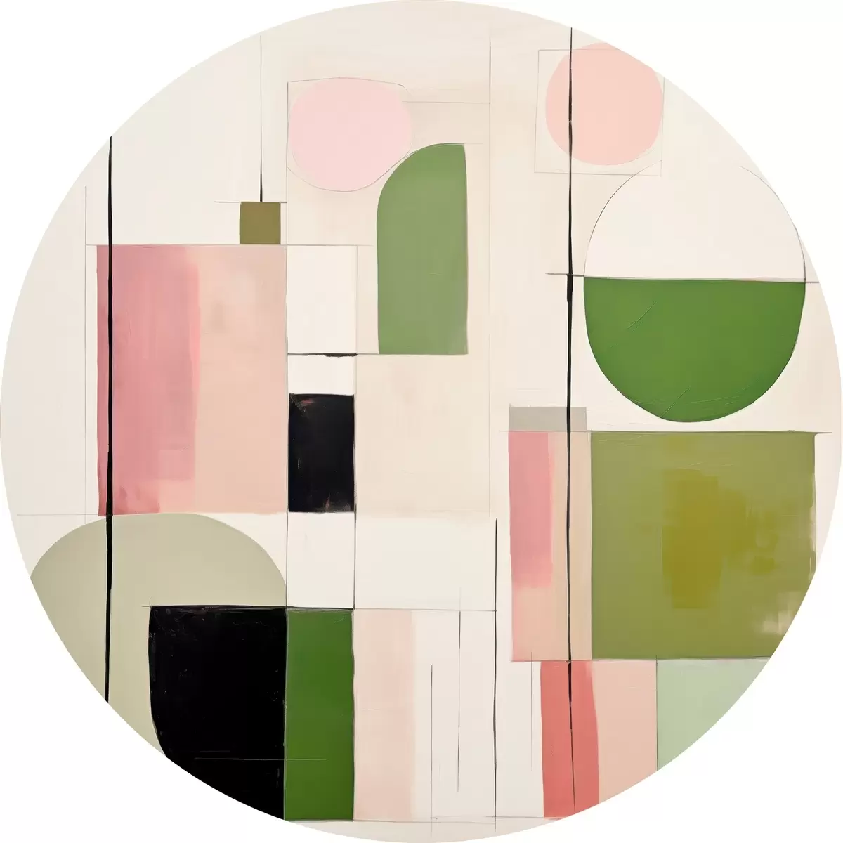 Ronde schilderijen Abstracte kunst met kleurrijke blokken en lijnen Nr r46313