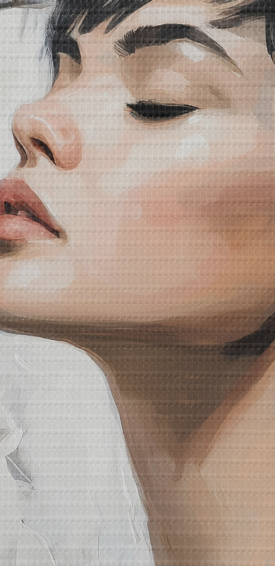 Er zijn drie soorten materiaal te bestellen: Economic Canvas - een dicht en duurzaam materiaal voor digitaal printen, identiek aan schildersdoek, waterdicht oppervlak, realistische weergave van details, materiaal met gemiddelde korrel. Premium Canvas - de textuur lijkt op die van schildersdoek (verweven kleine draden). Zachte, gedetailleerde reproductie van de afbeelding op een mat oppervlak. Eco-Premium - hoogwaardige 100% katoenen stof. Dankzij de natuurlijke katoenvezels is het materiaal duurzaam en slijtvast. Uitstekende kleurweergave en detail.