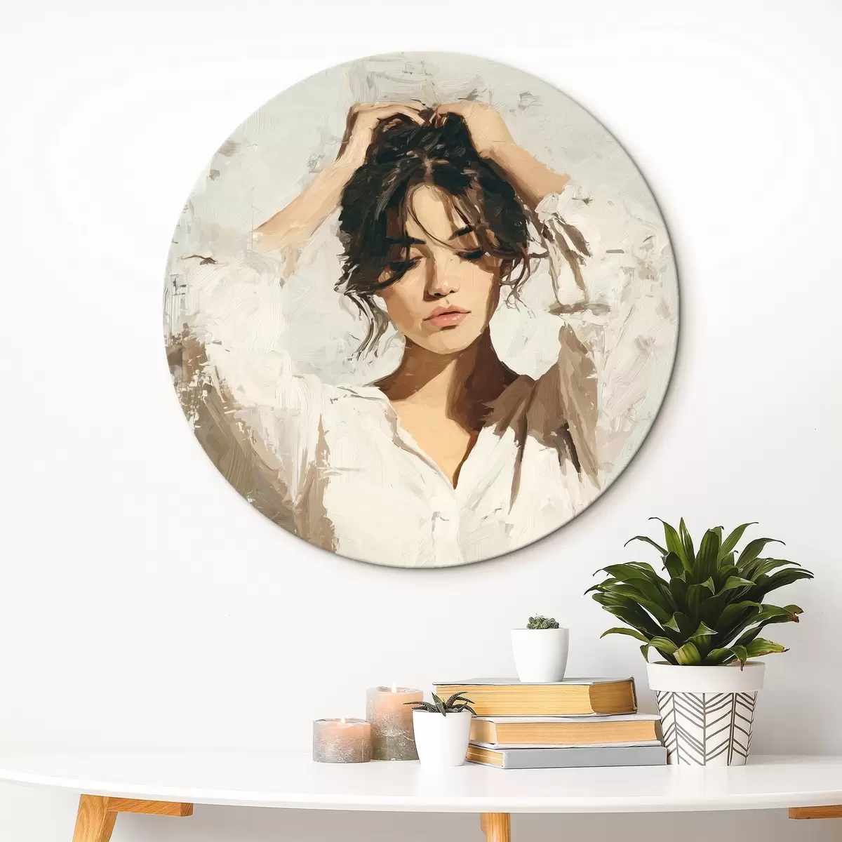 Ronde schilderijen Vrouw in het wit Nr r46366