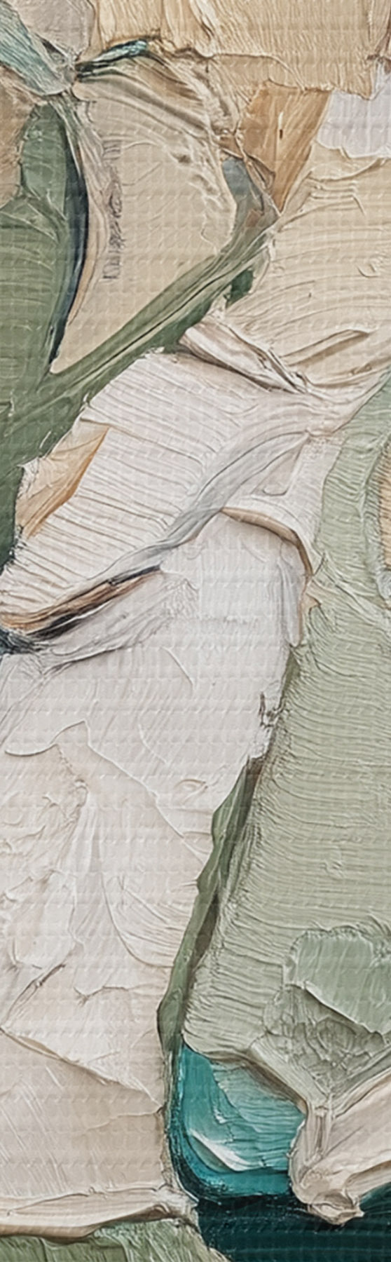 De fijne weving van draden op dit doek lijkt op het oppervlak van professionele schildersdoeken.