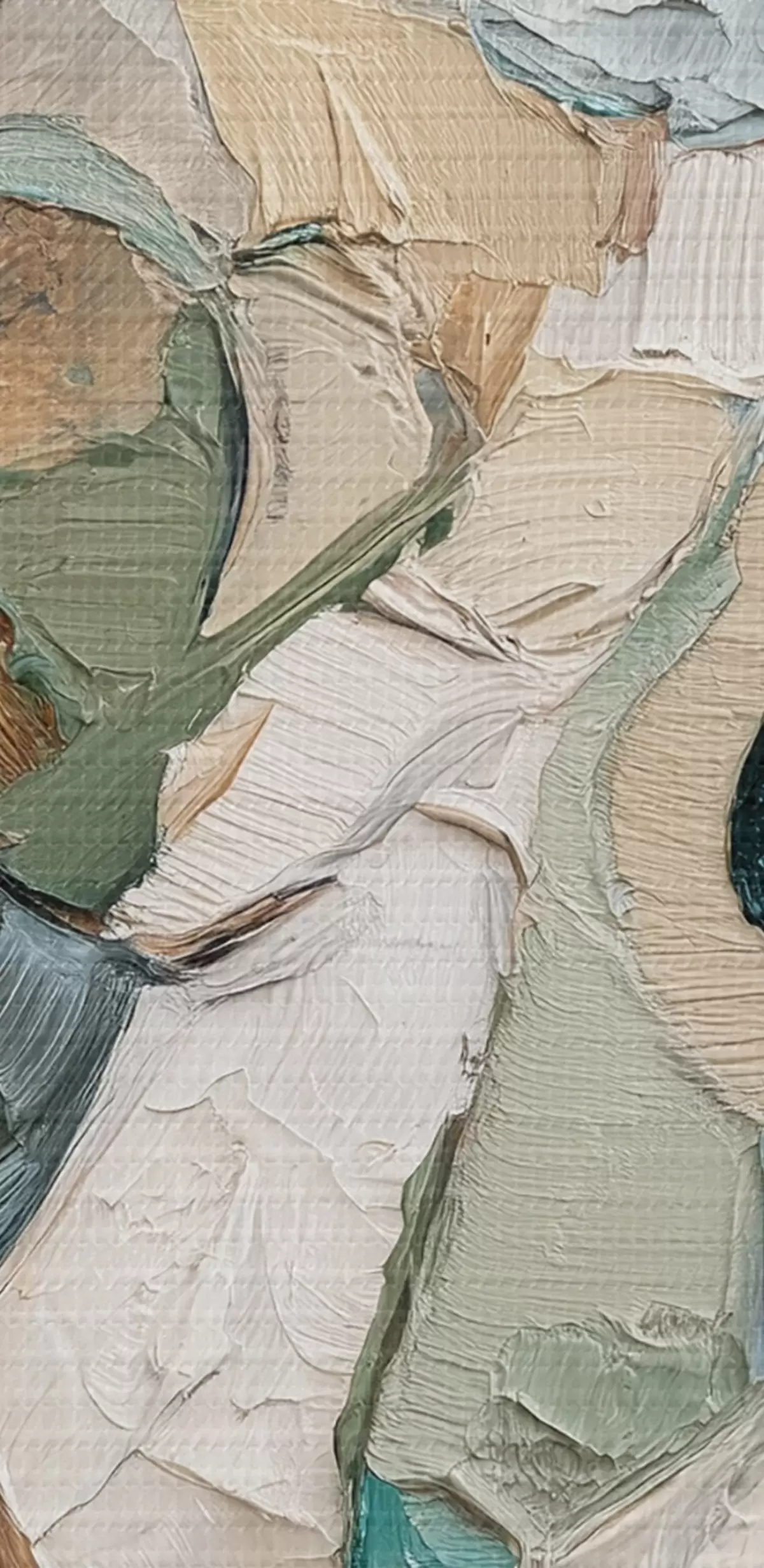 Het schilderij kan direct na ontvangst worden opgehangen. Het schilderij wordt opgespannen op een 2 cm breed houten spieraam.