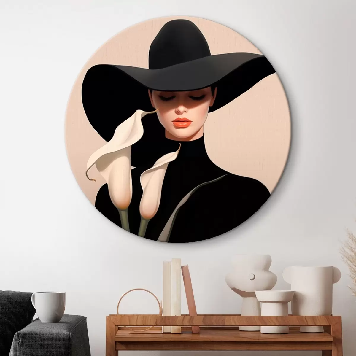 Ronde schilderijen Meisje met hoed en calas Nr r46420