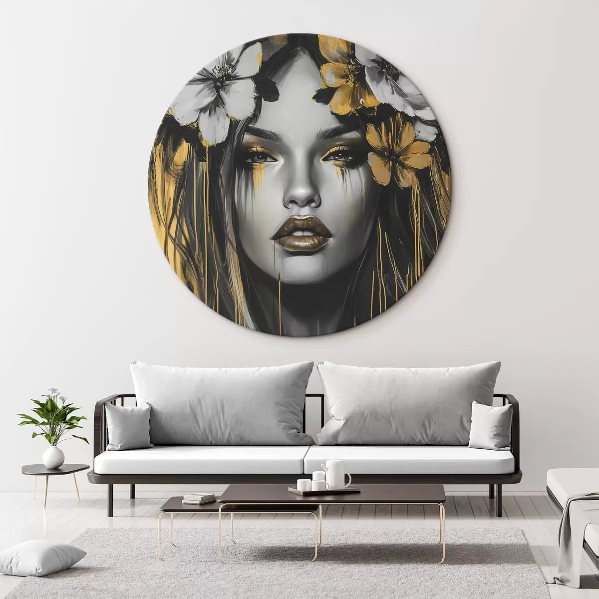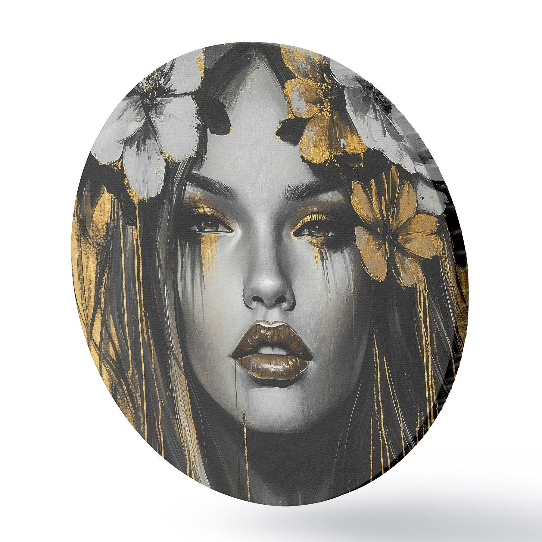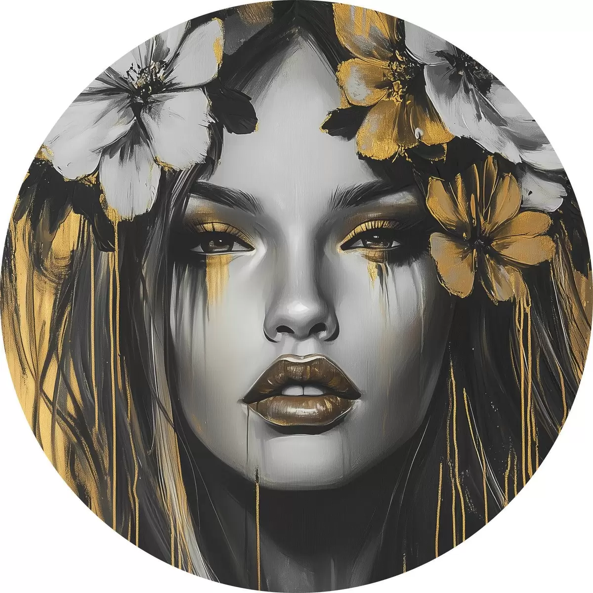 Ronde schilderijen Abstract portret van een vrouw met bloemen Nr r46454