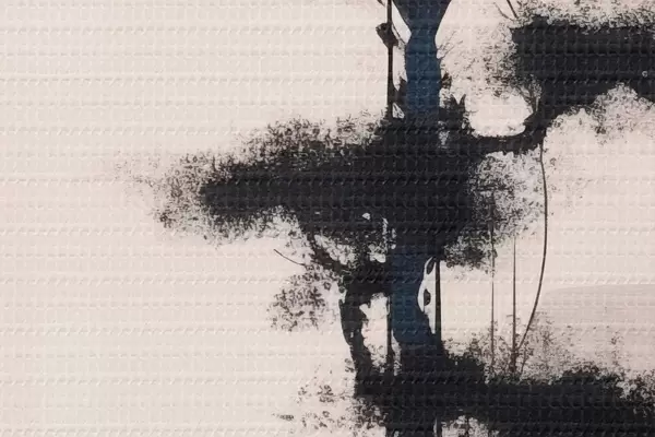 De fijne weving van draden op dit doek lijkt op het oppervlak van professionele schildersdoeken.