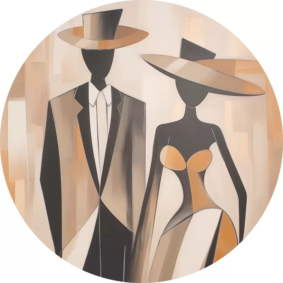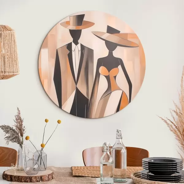Ronde schilderijen Silhouetten van een stel Nr r46477