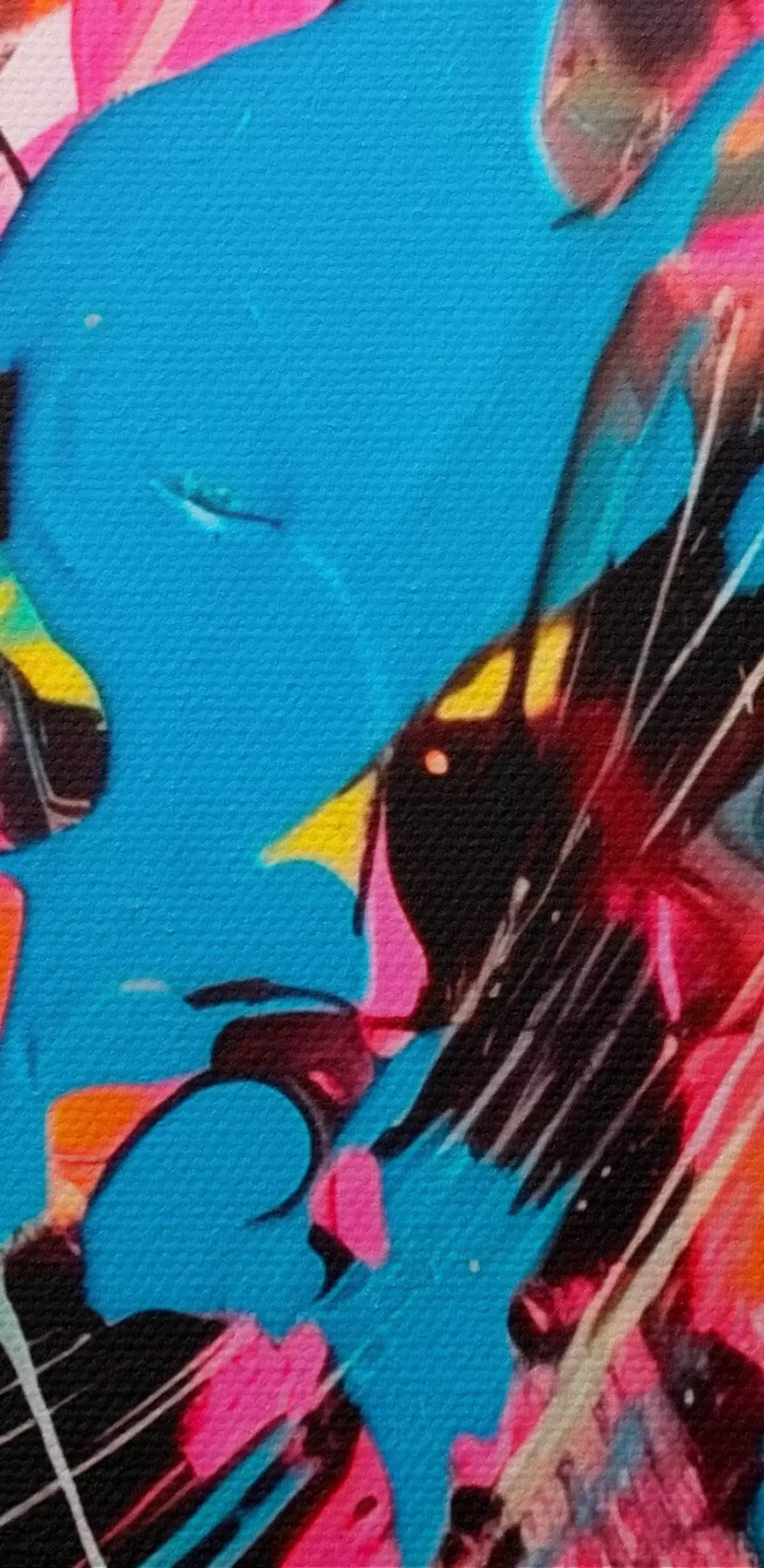 Het schilderij kan direct na ontvangst worden opgehangen. Het schilderij wordt opgespannen op een 2 cm breed houten spieraam.