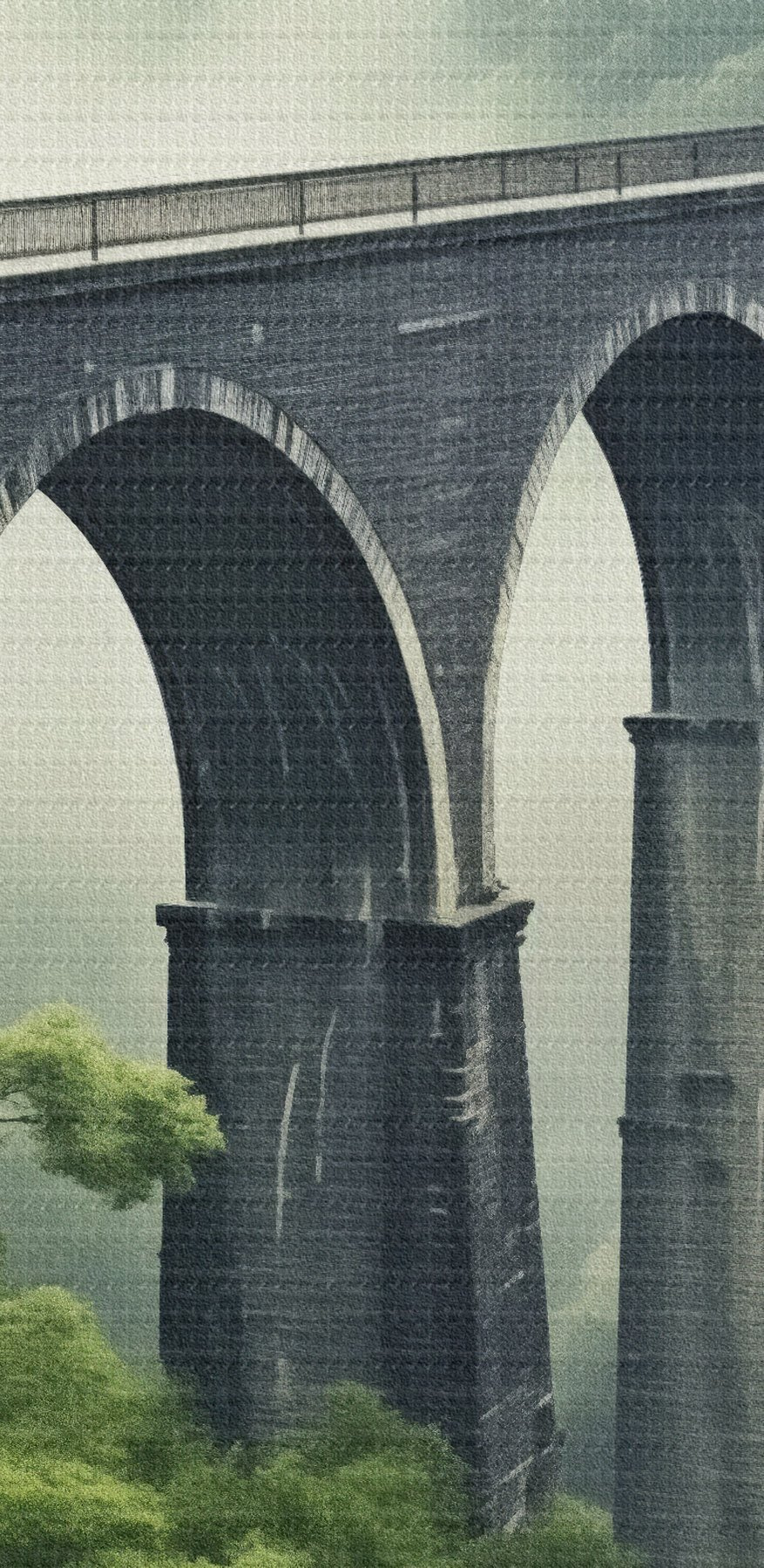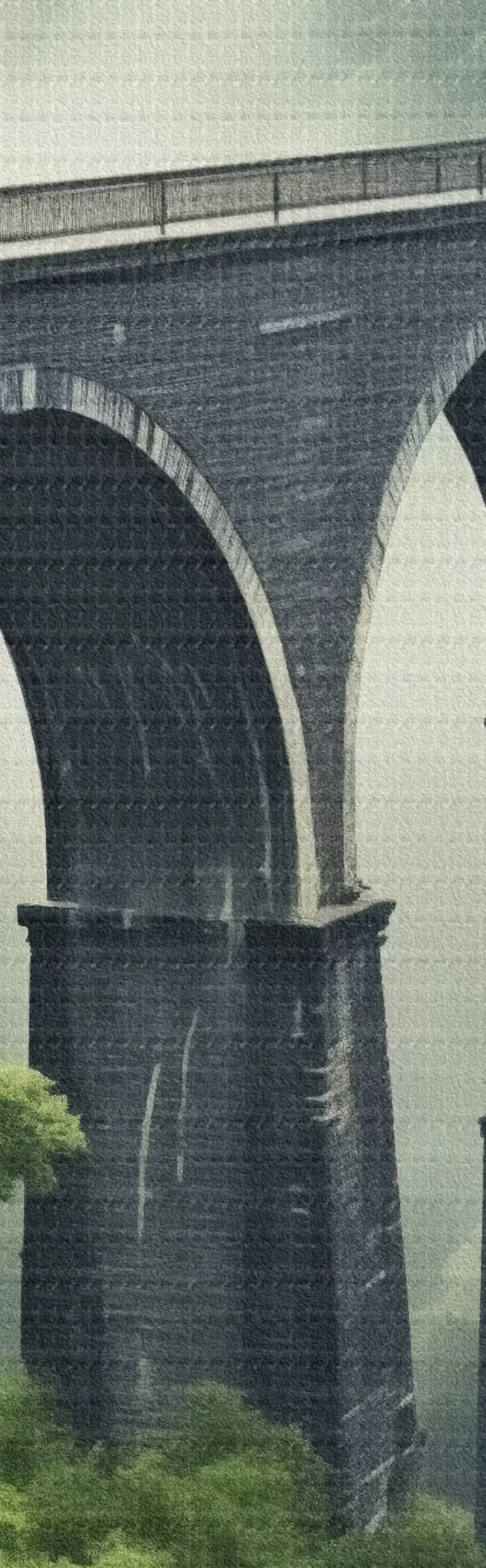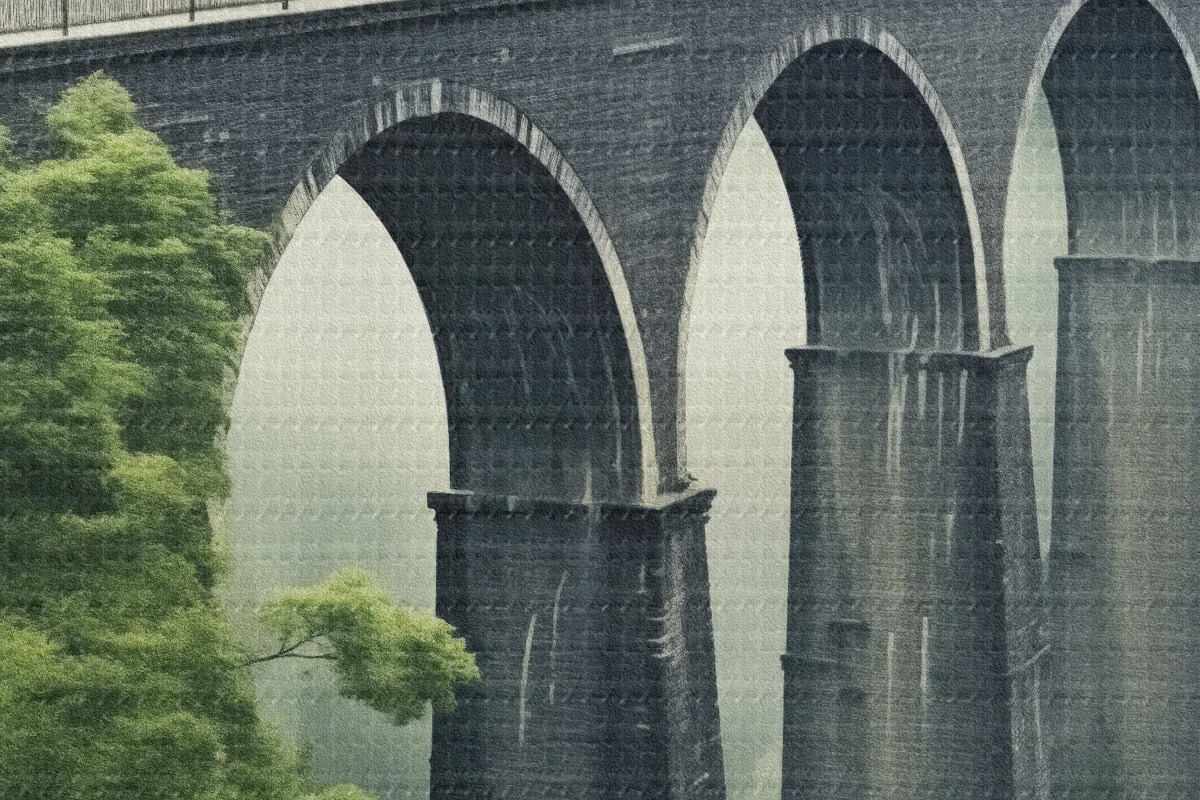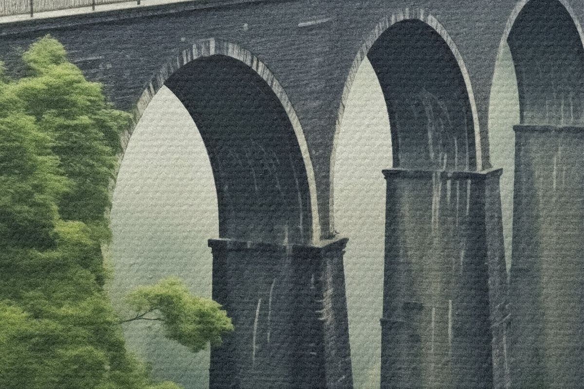 Ronde schilderijen Stenen viaduct boven mistige beboste vallei r46483