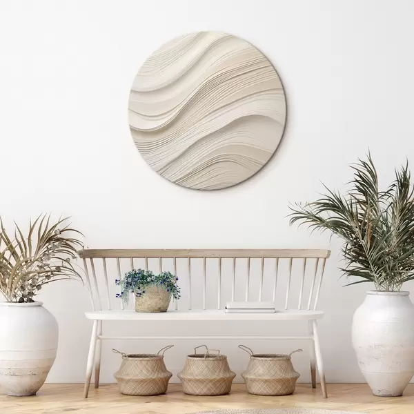 Ronde schilderijen Gelaagde zandkleurige reliëfgolven, zachte textuur Nr r46484