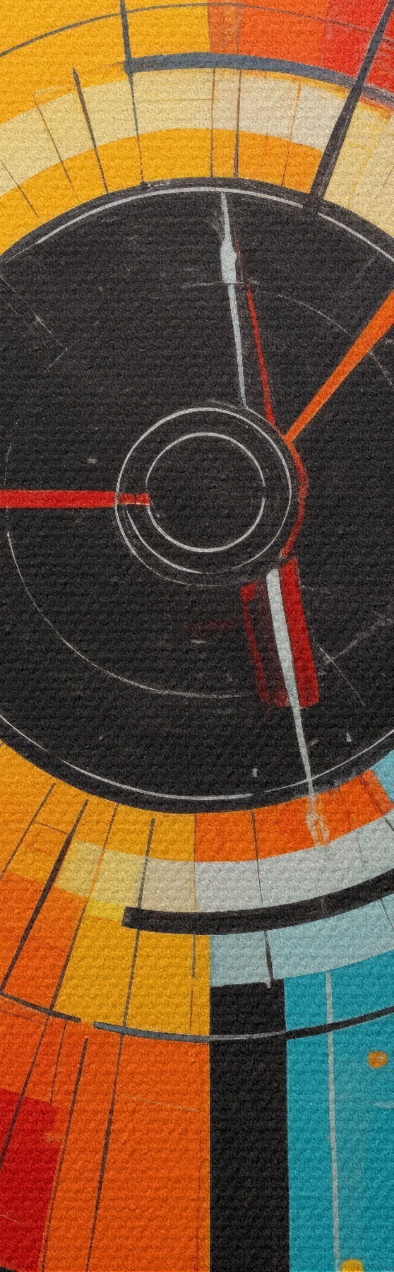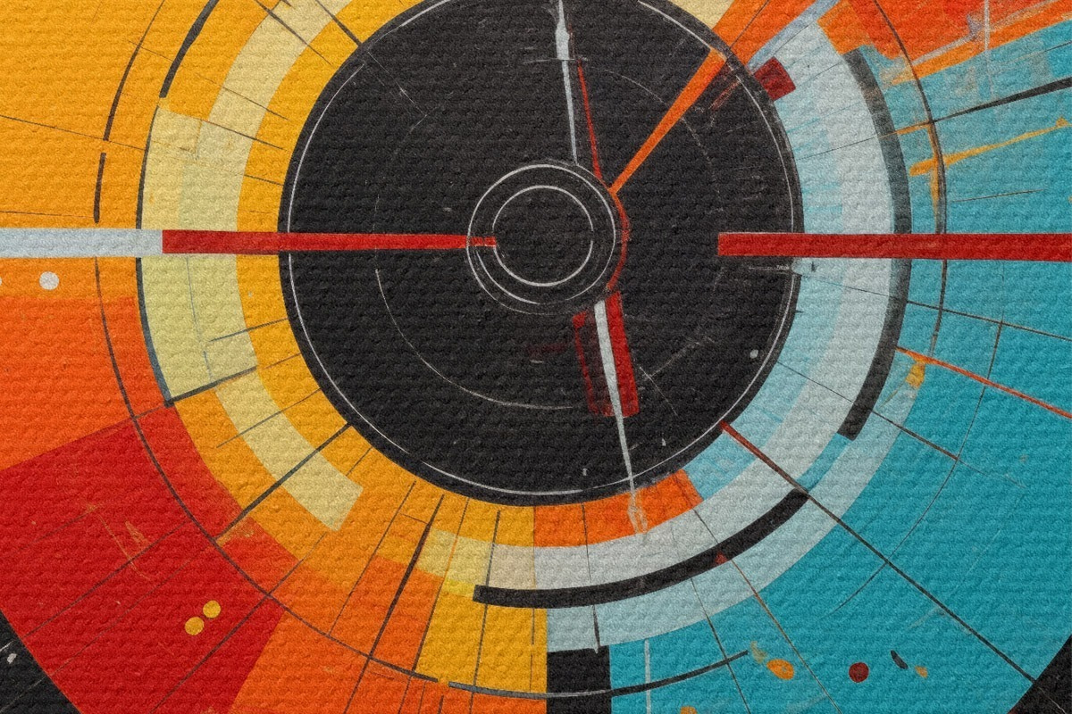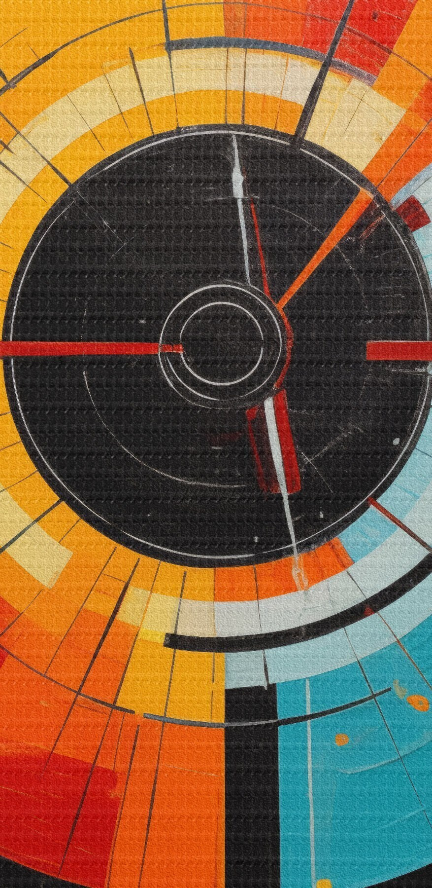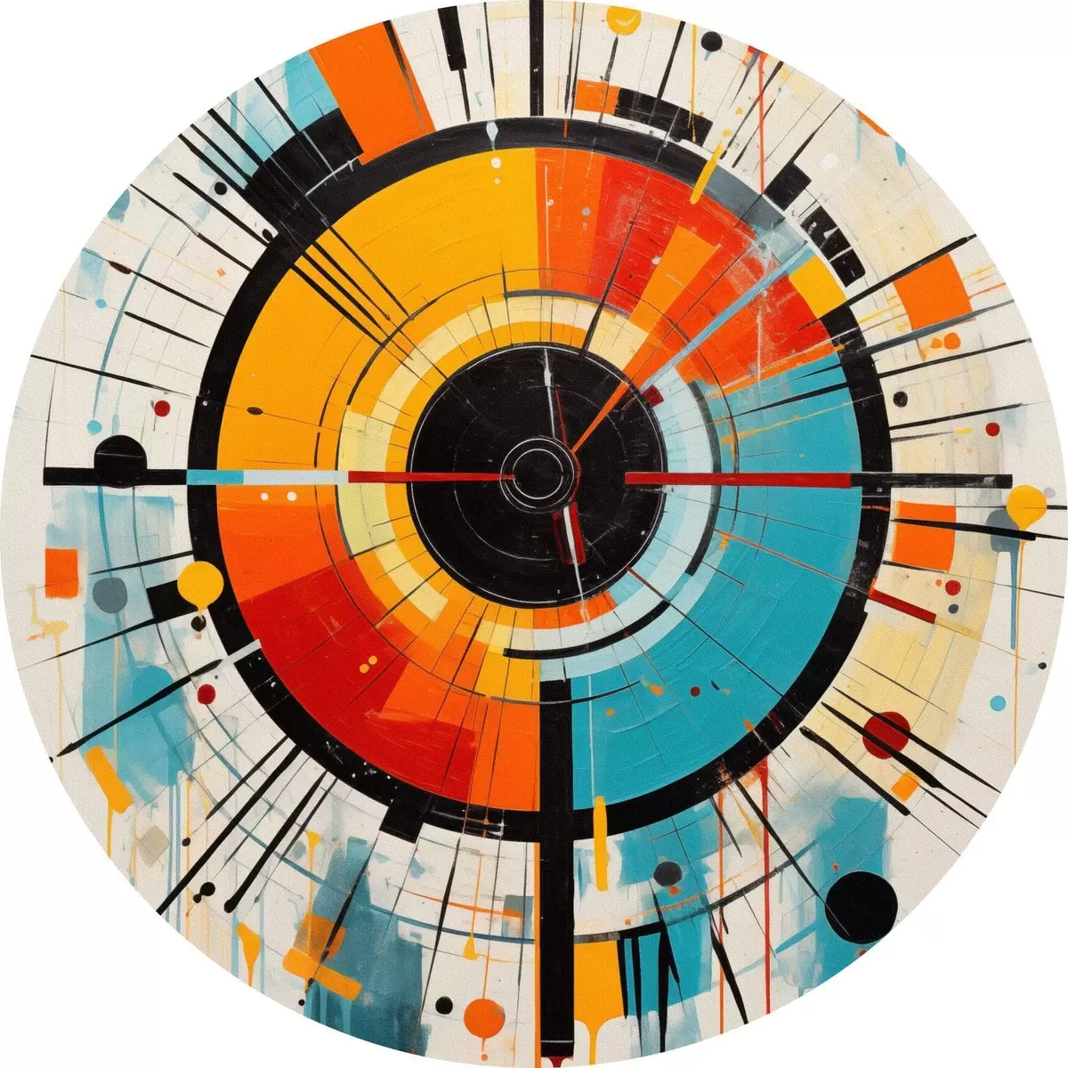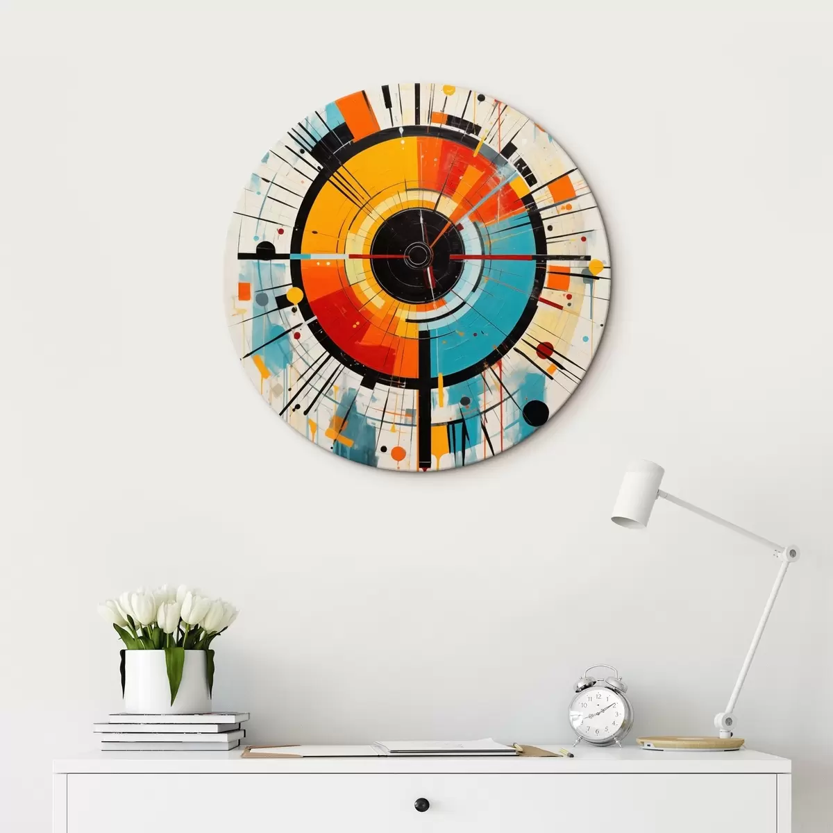 Ronde schilderijen Radiale barst in blauwgroen, oranje en zwart Nr r46485