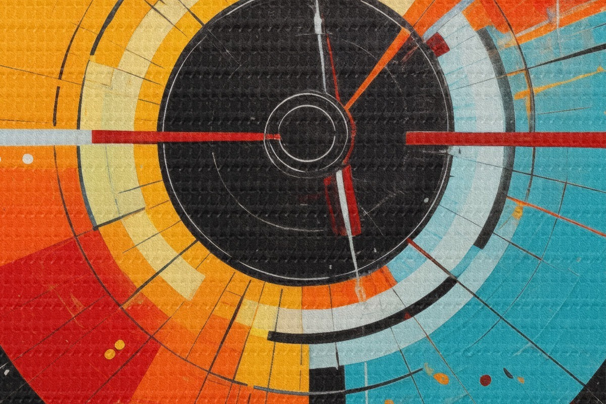 Ronde schilderijen Radiale barst in blauwgroen, oranje en zwart r46485