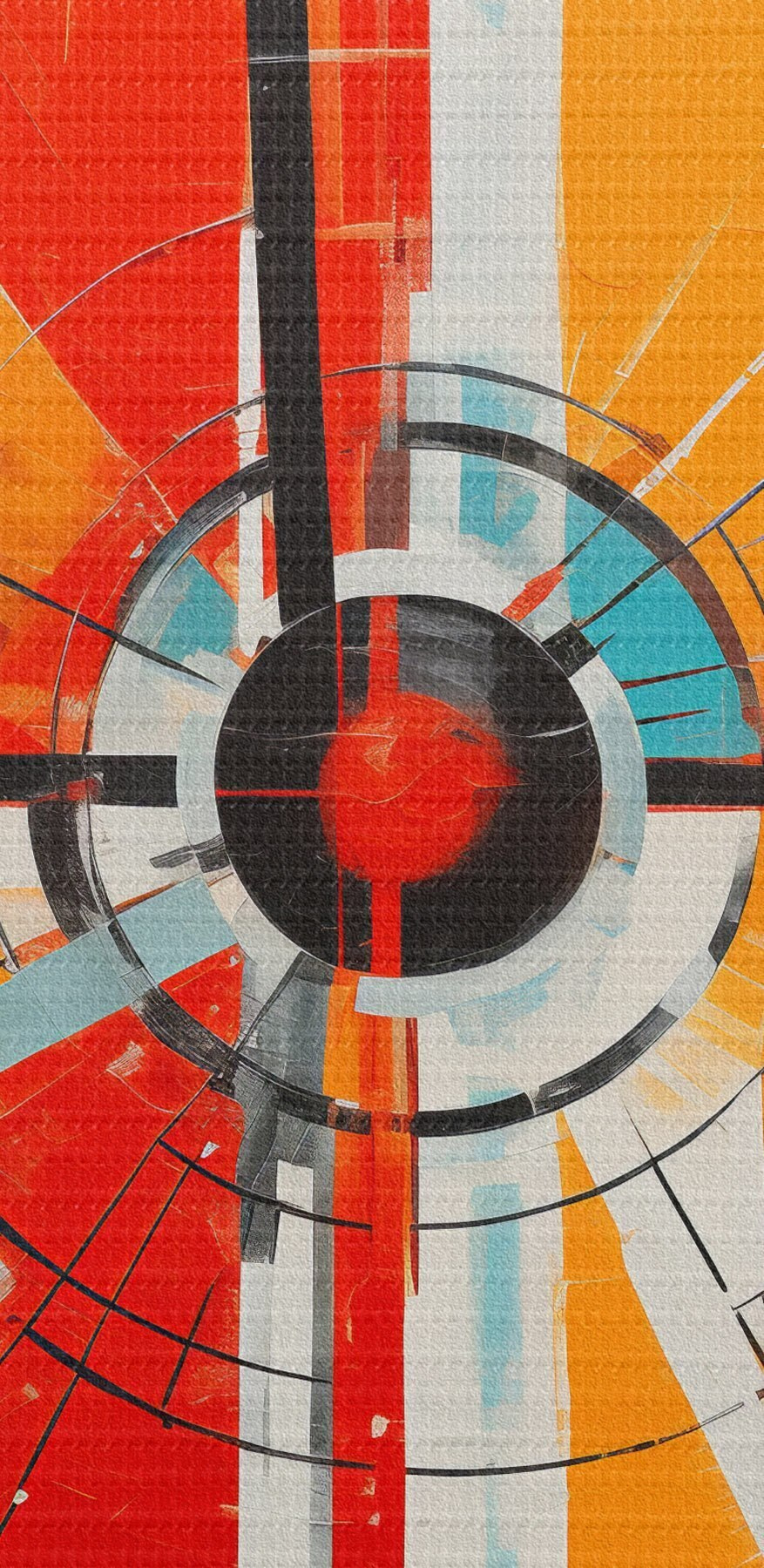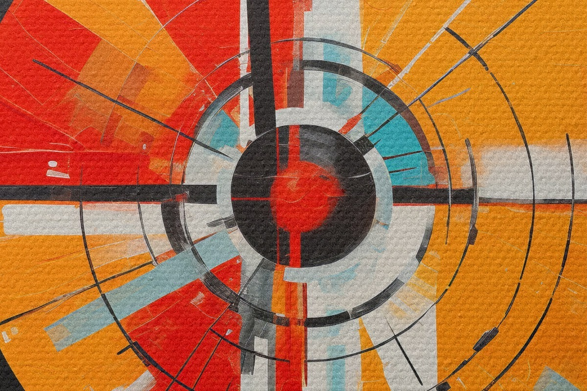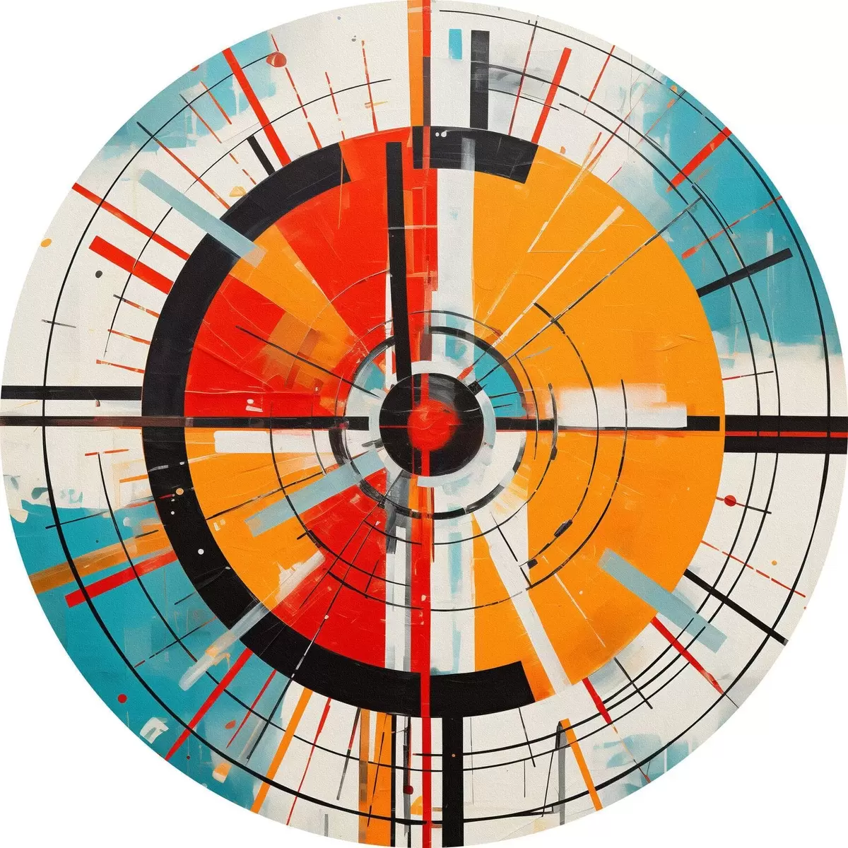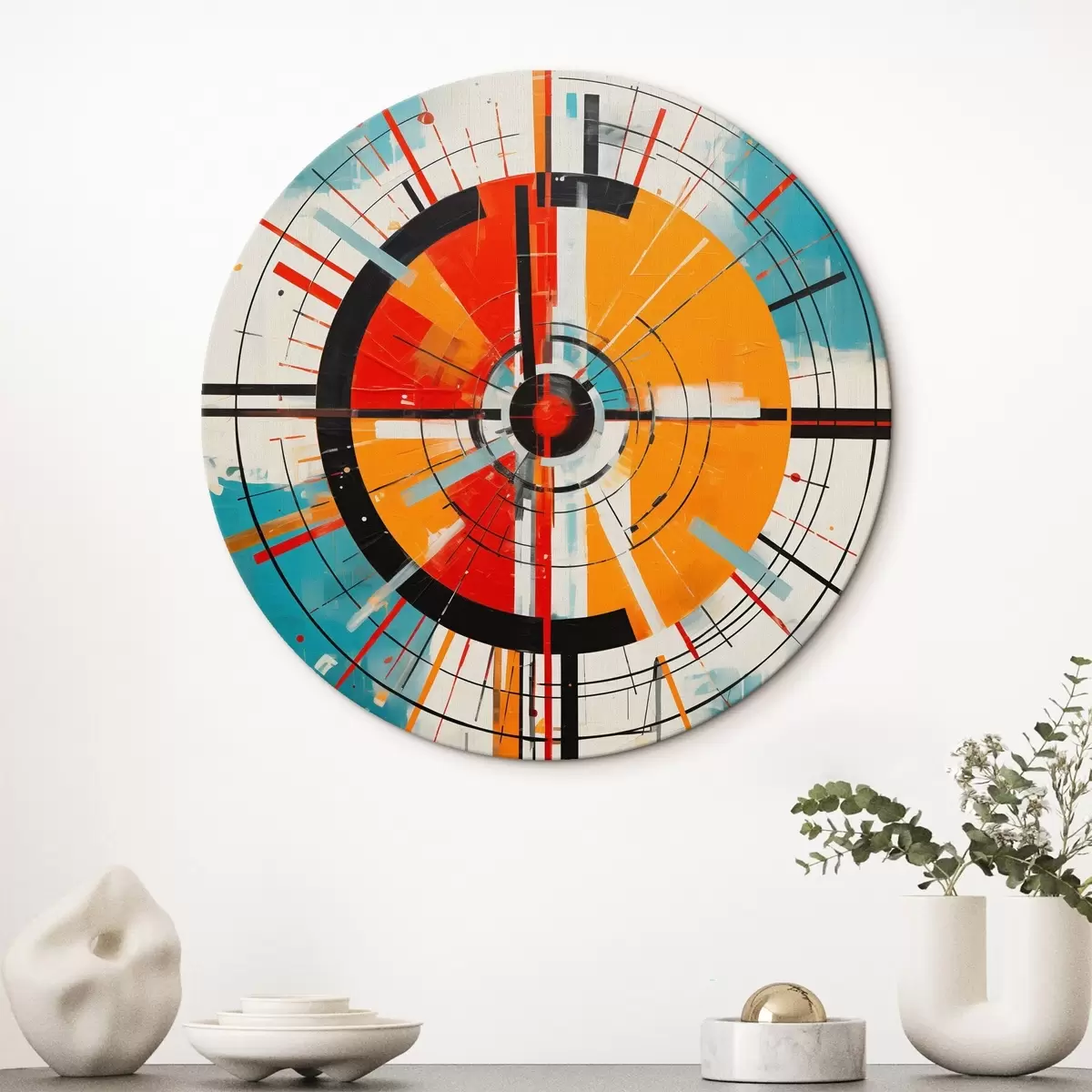 Ronde schilderijen Concentrisch doel met blauwgroene en oranje segmenten r46486