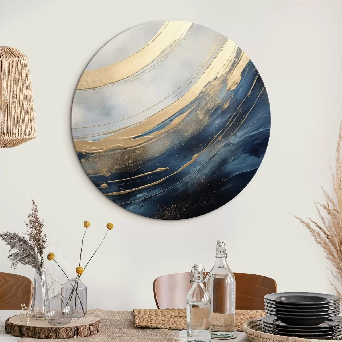 Ronde schilderijen Brede lichtbogen op een diepblauw veld r46487
