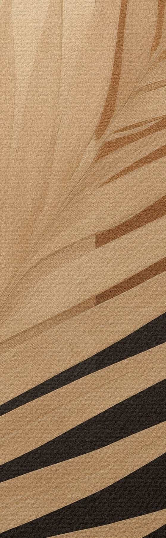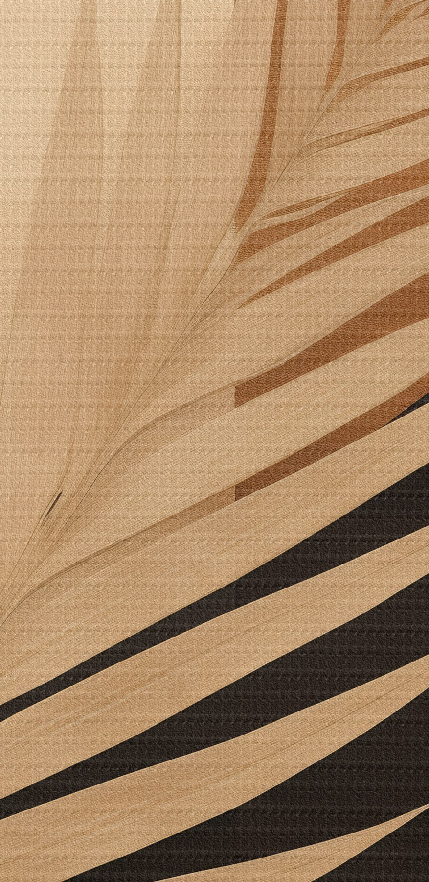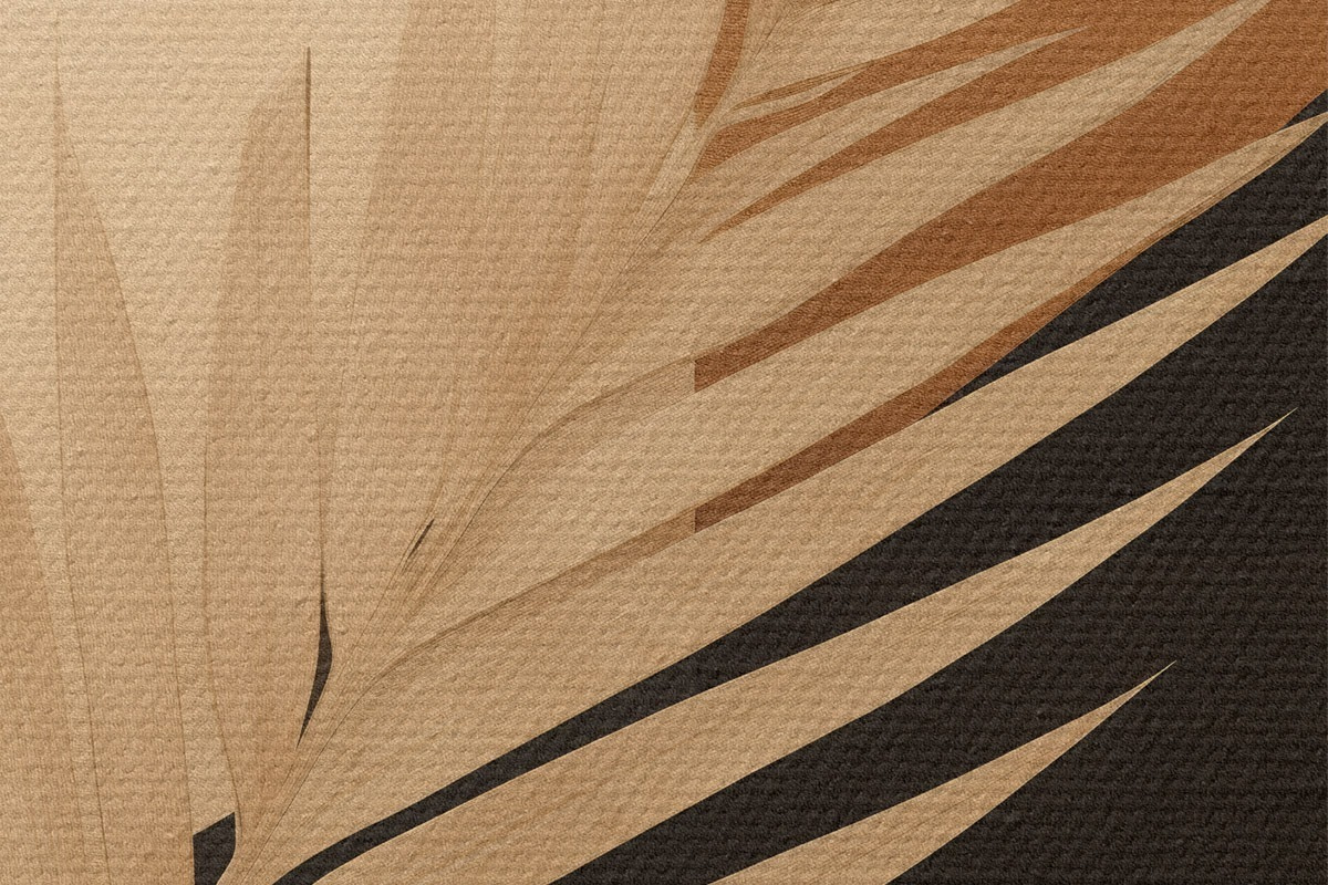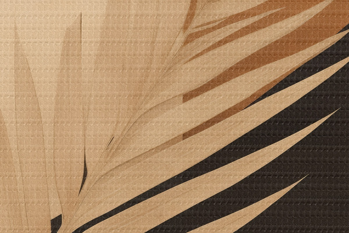 Ronde schilderijen Palmblad boven terracotta en crèmekleurige geometrie Nr r46490
