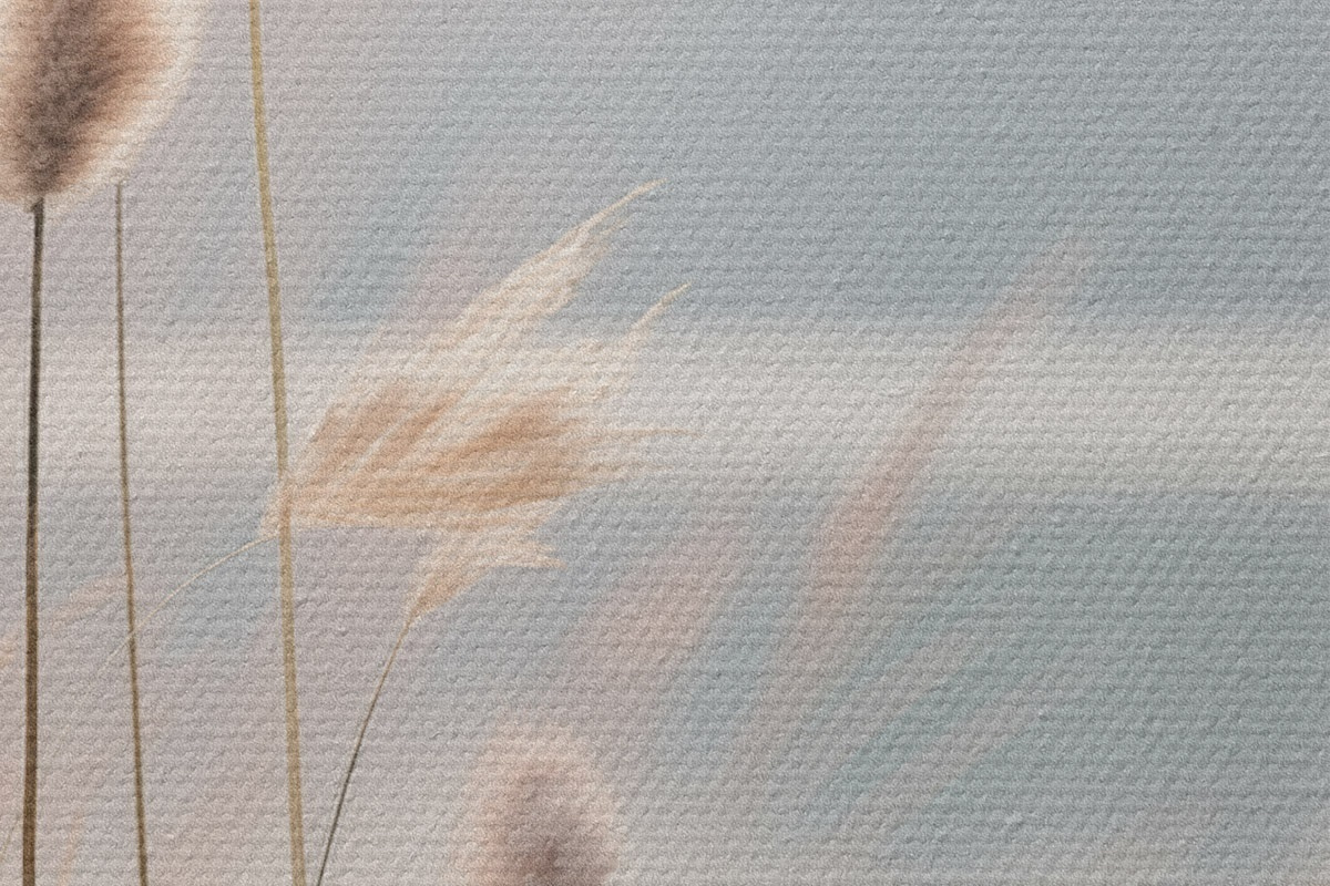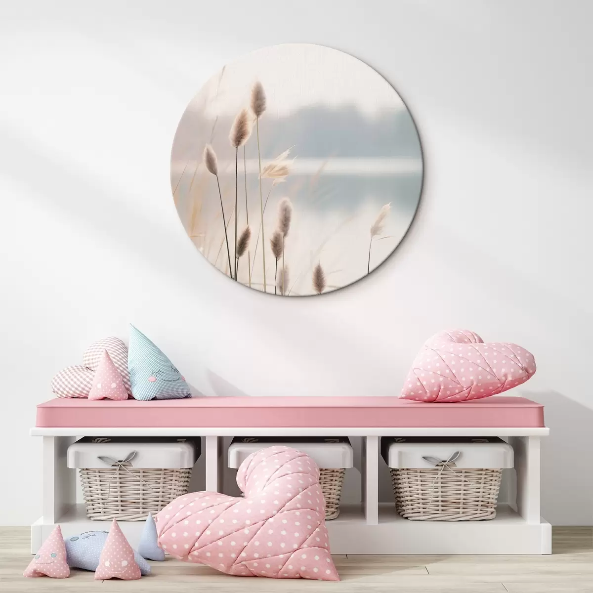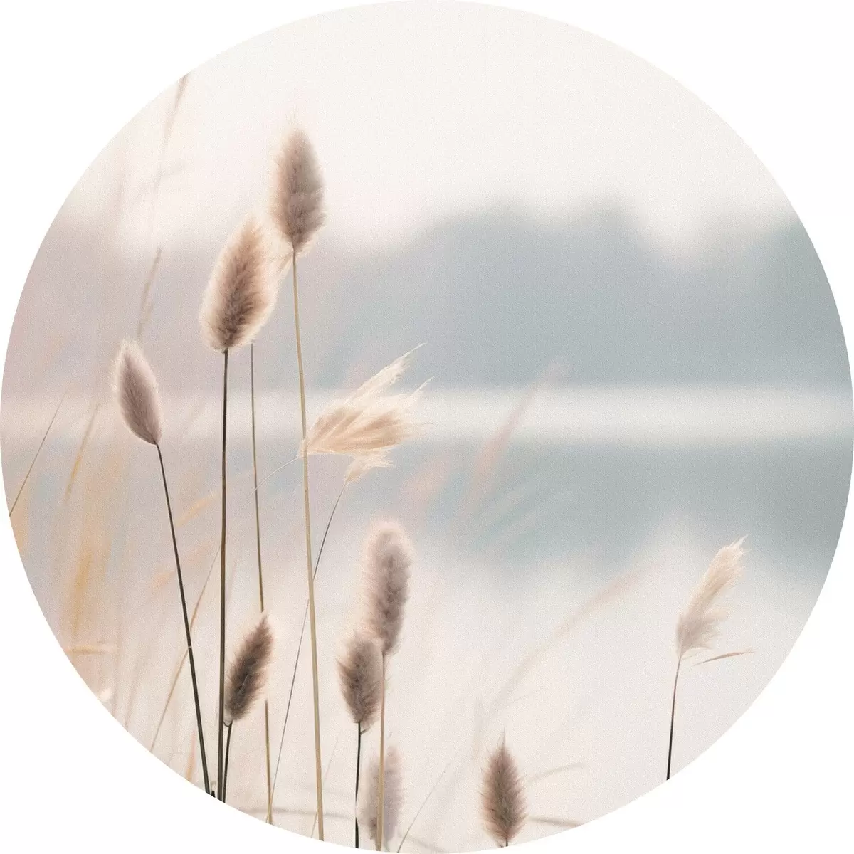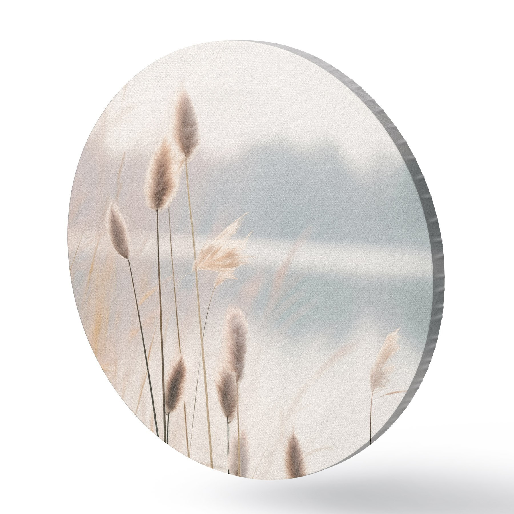 Ronde schilderijen Zachte rietkragen aan een mistige oever, pastelbeige tinten Nr r46504