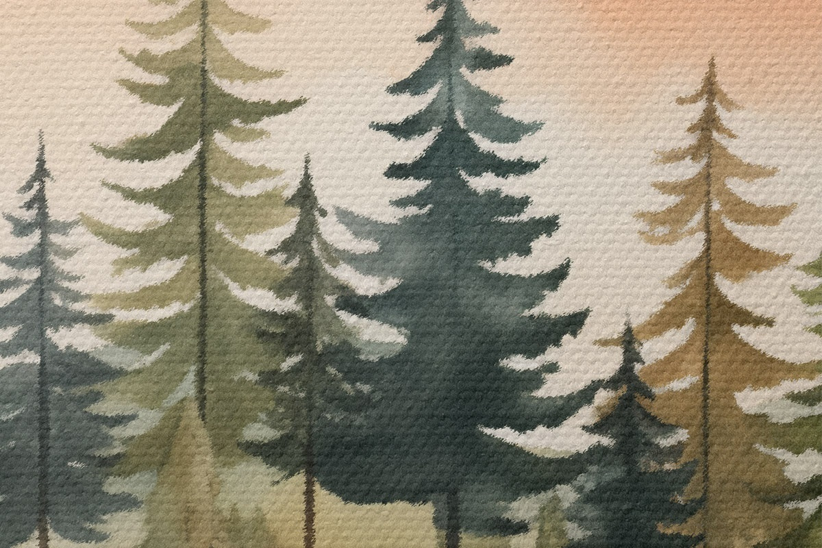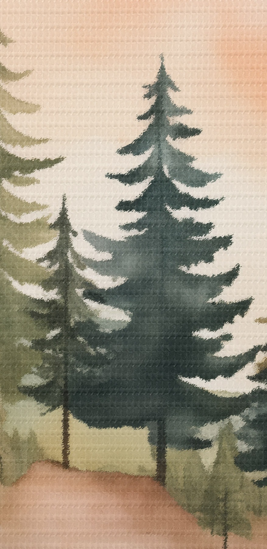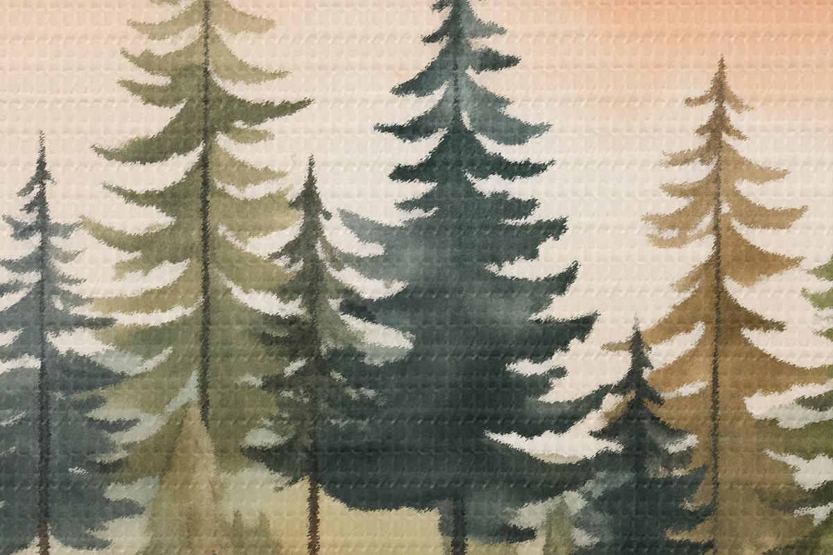 Ronde schilderijen Aquarel dennen op een mistig eilandje, zachte perzikkleurige lucht Nr r46505