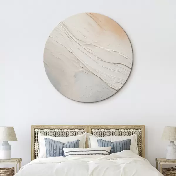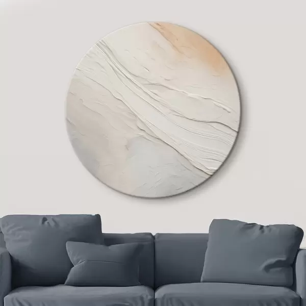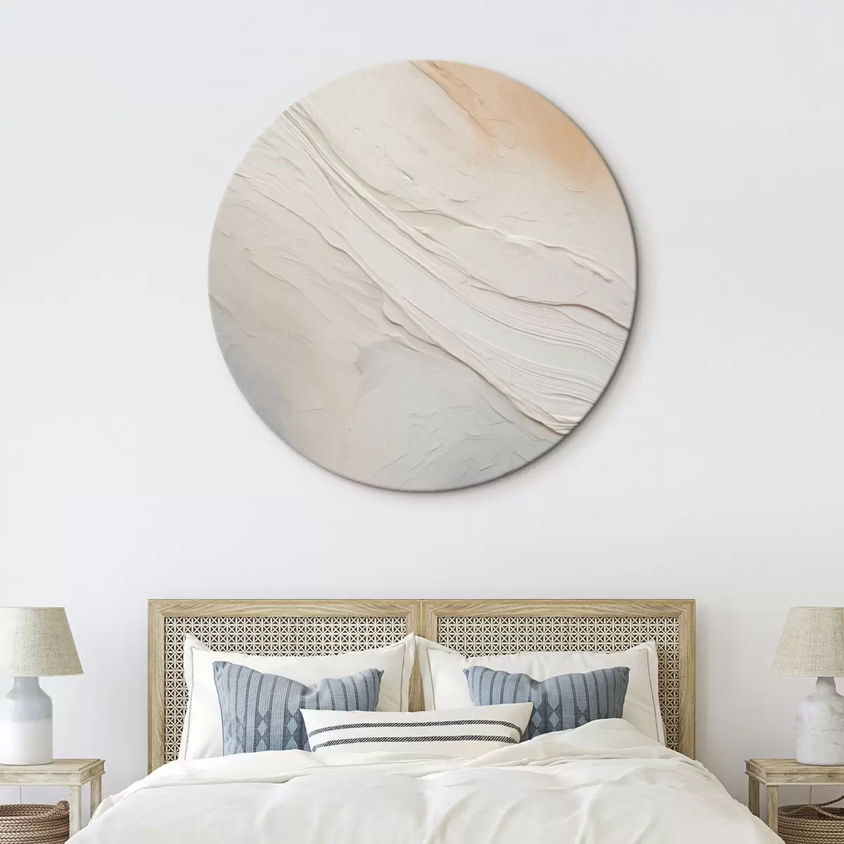 Ronde schilderijen Getextureerde pleistergolven in zachte ivoor- en zandtinten r46510