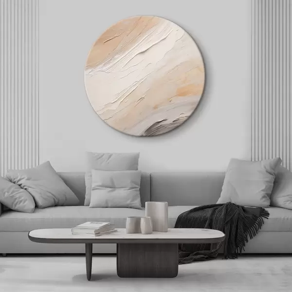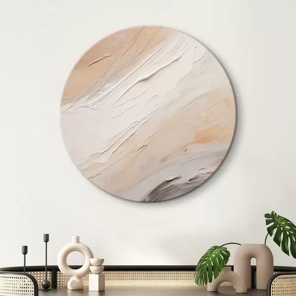 Ronde schilderijen Getextureerd pleisterwerk in warme beige tinten met zacht grijs Nr r46511