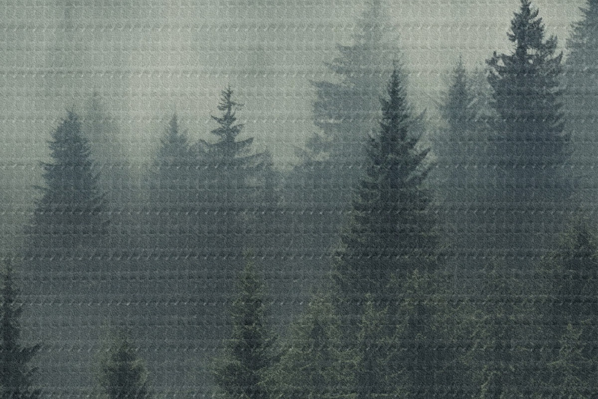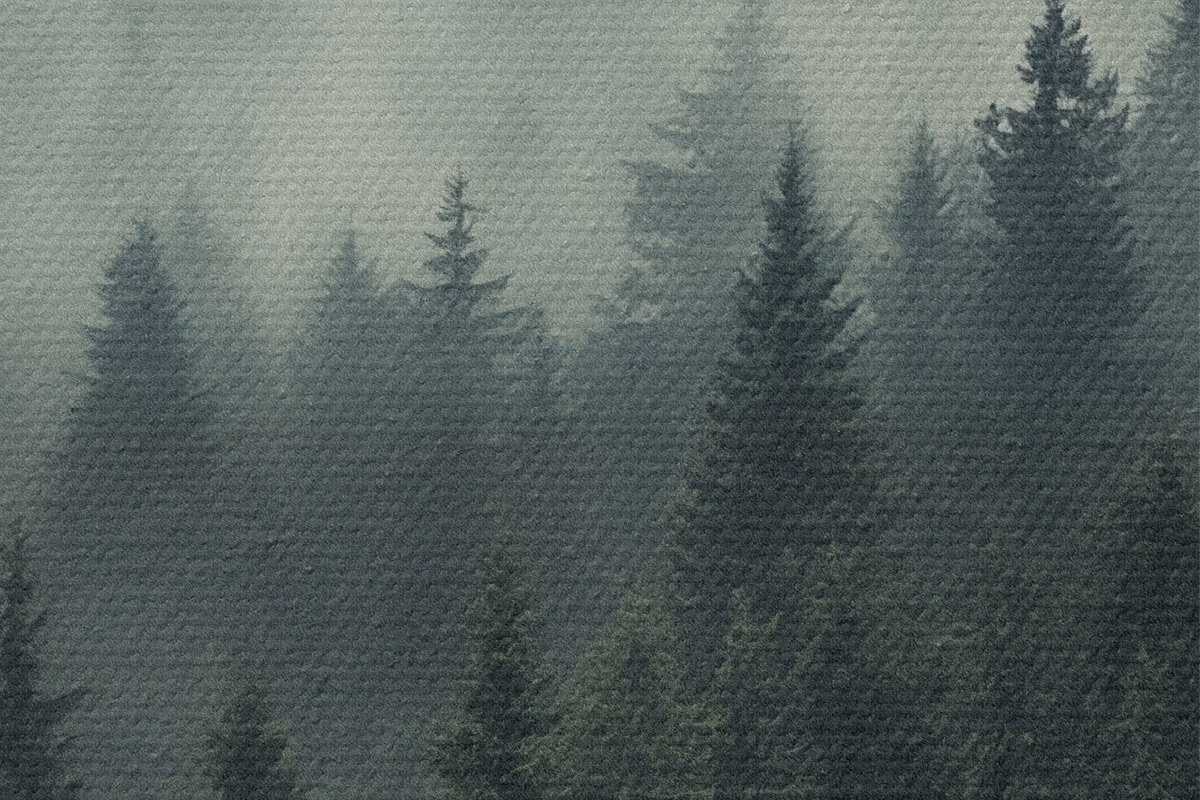 Ronde schilderijen Mist die over een dichtbegroeid groenblijvend bos trekt r46512