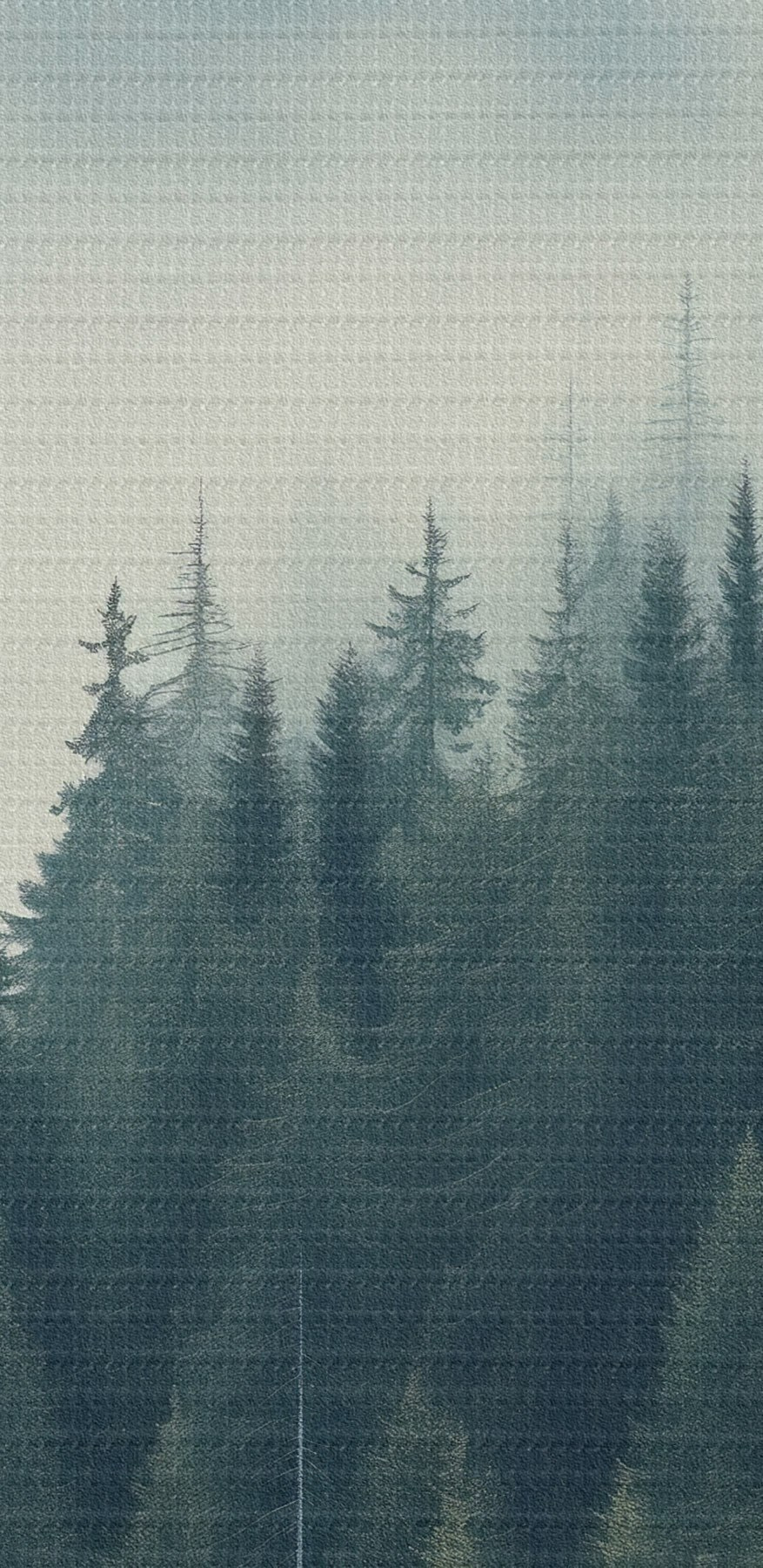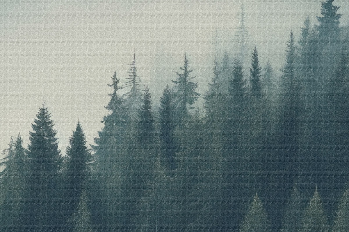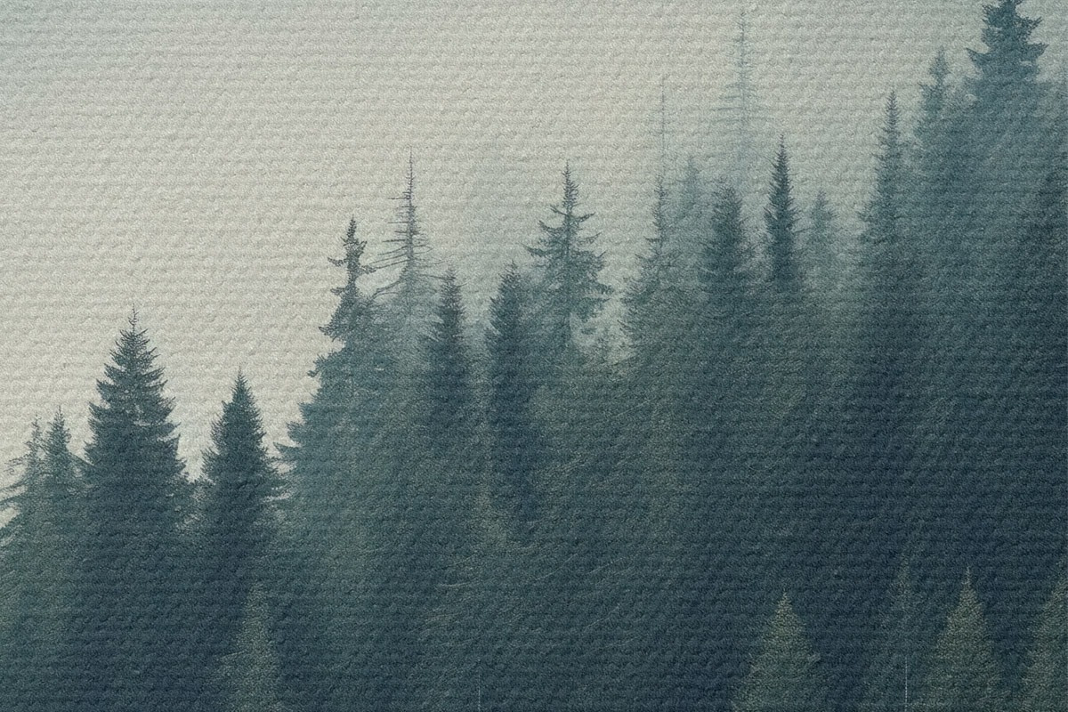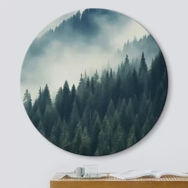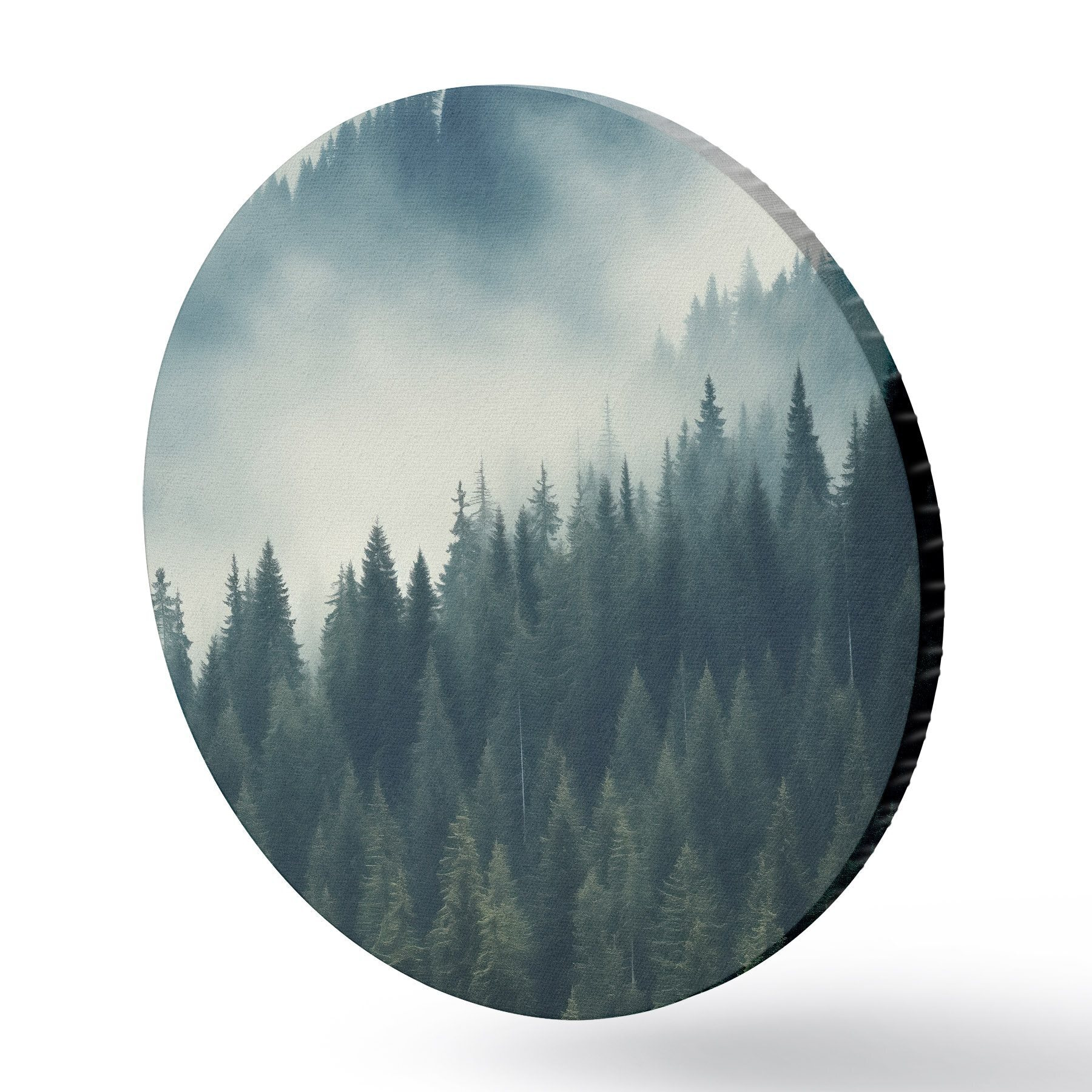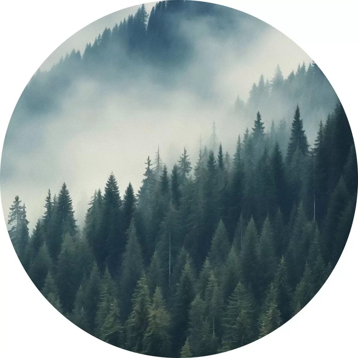 Ronde schilderijen Mist boven naaldbossen, diepgroene tinten r46516
