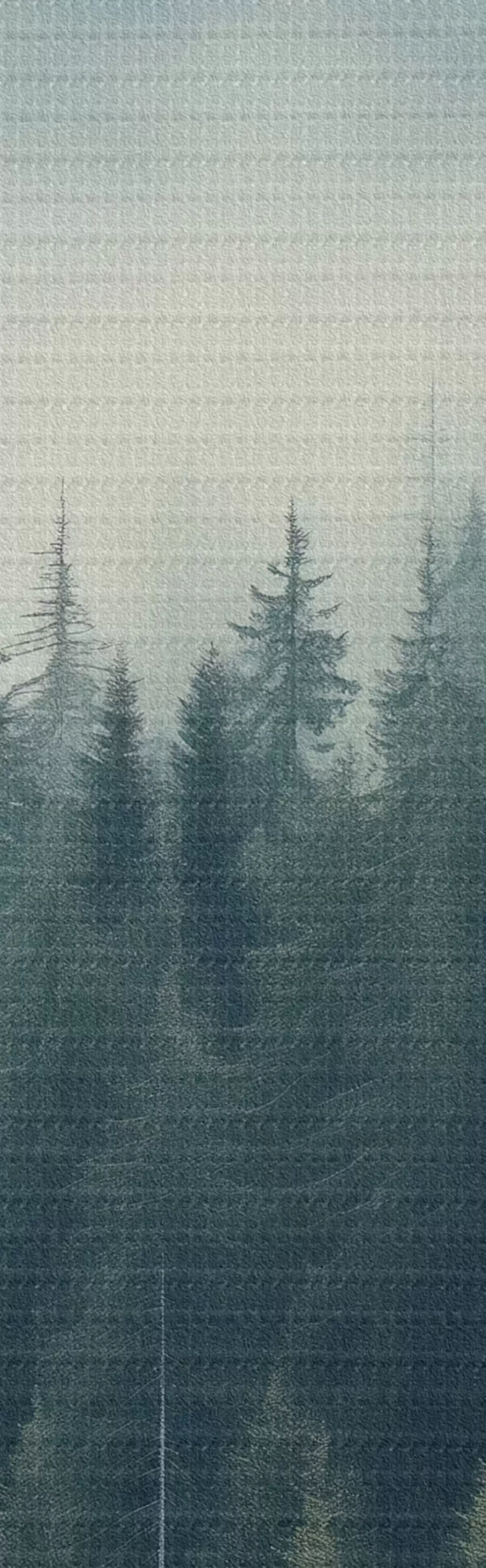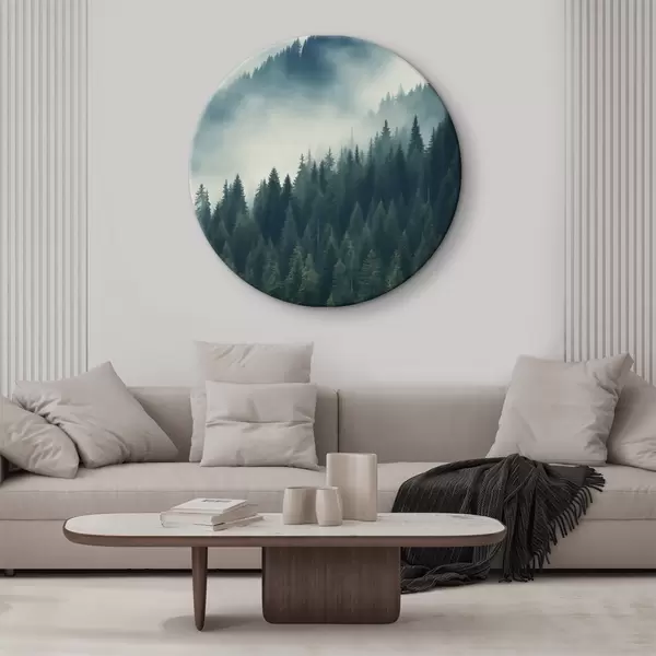 Ronde schilderijen Mist boven naaldbossen, diepgroene tinten Nr r46516