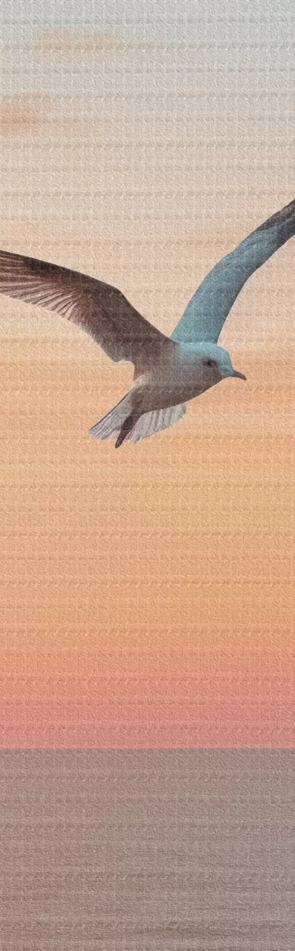 Ronde schilderijen Meeuw boven de zee bij een roze-perzikkleurige zonsondergang Nr r46520