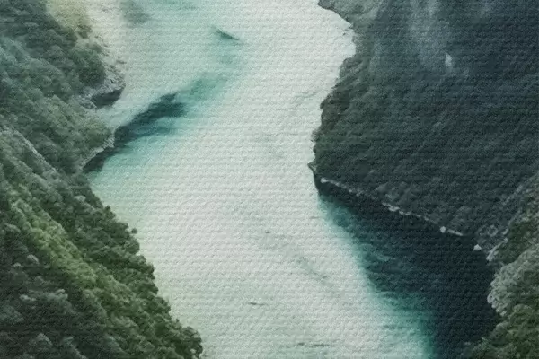 Ronde schilderijen Smalle kloof met een turquoise stroom van bovenaf Nr r46522
