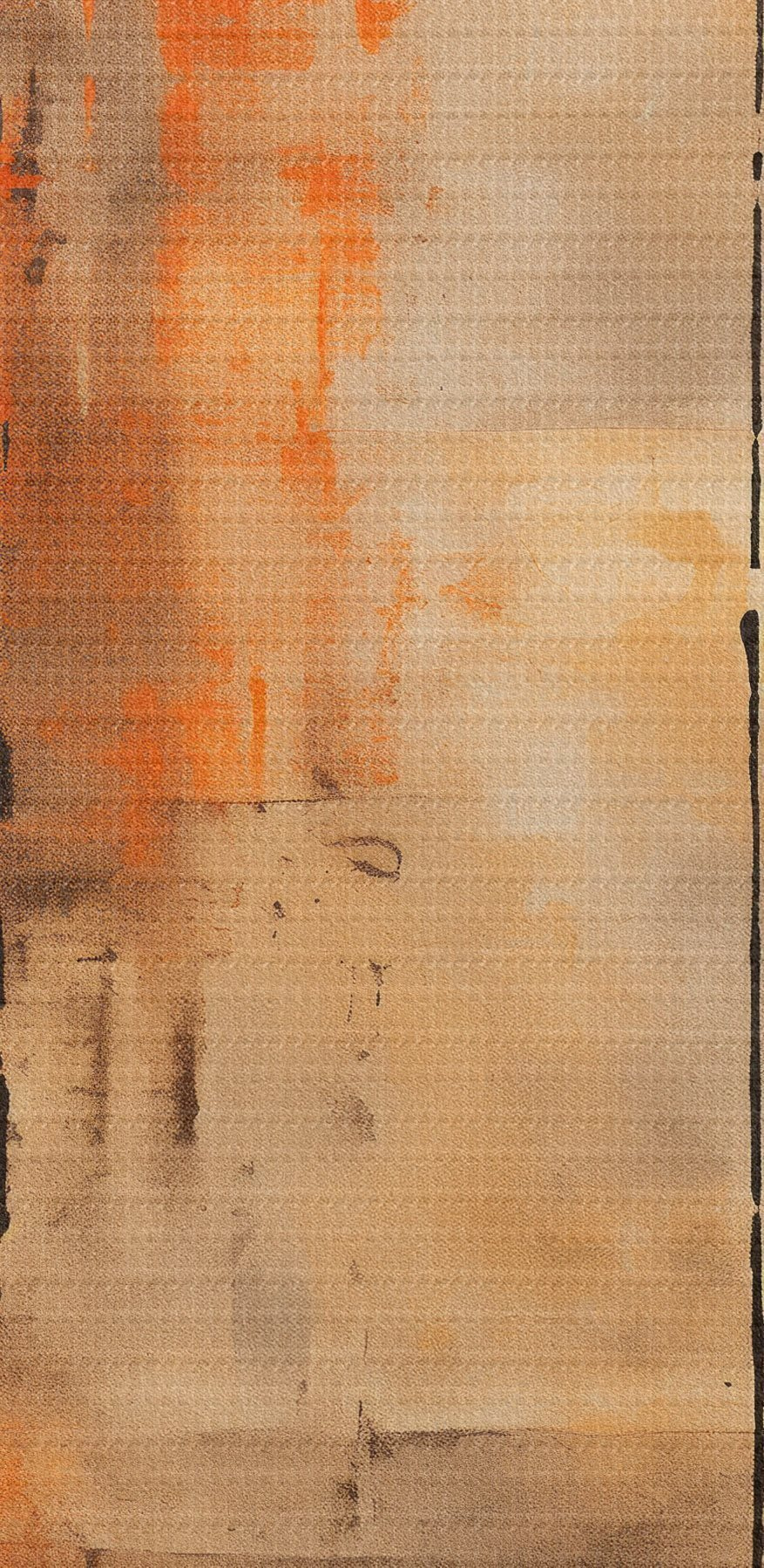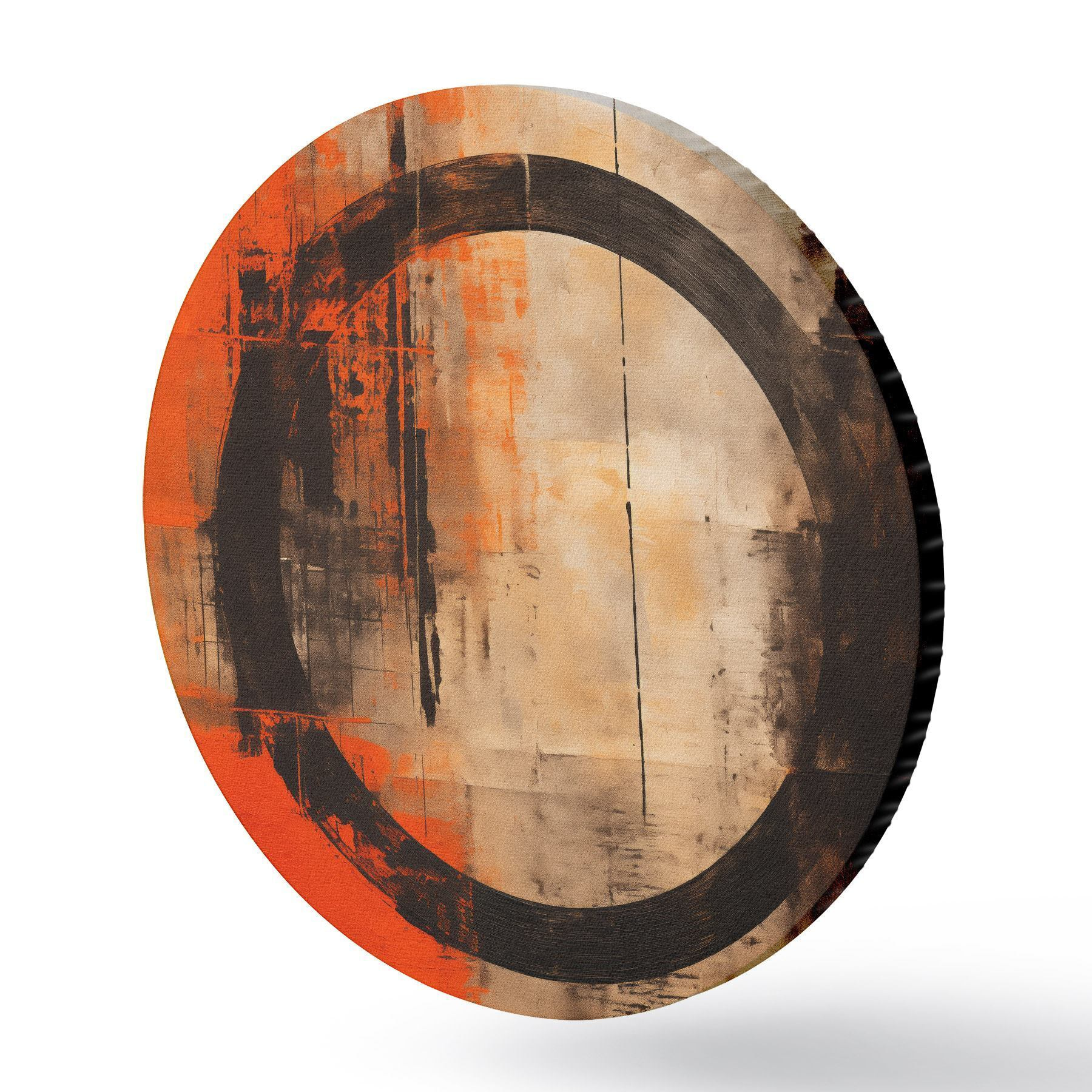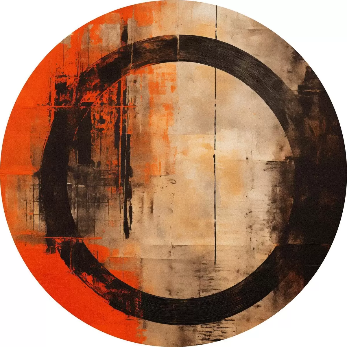 Ronde schilderijen Abstract met een grote zwarte cirkel en warme texturen Nr r46528