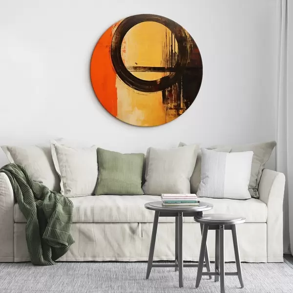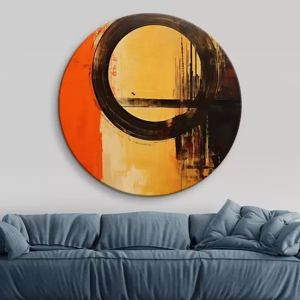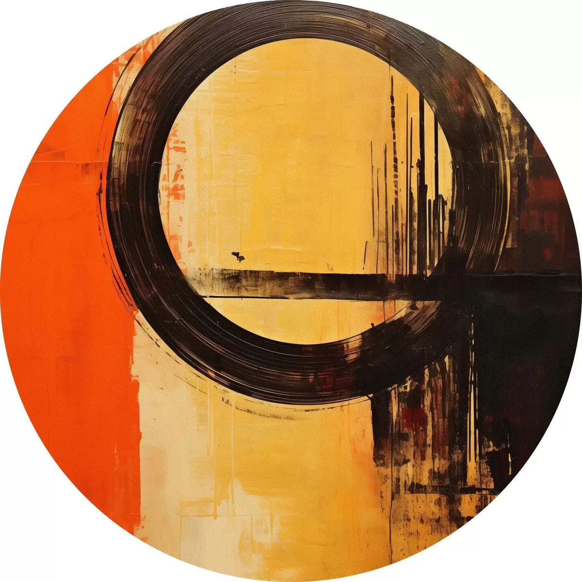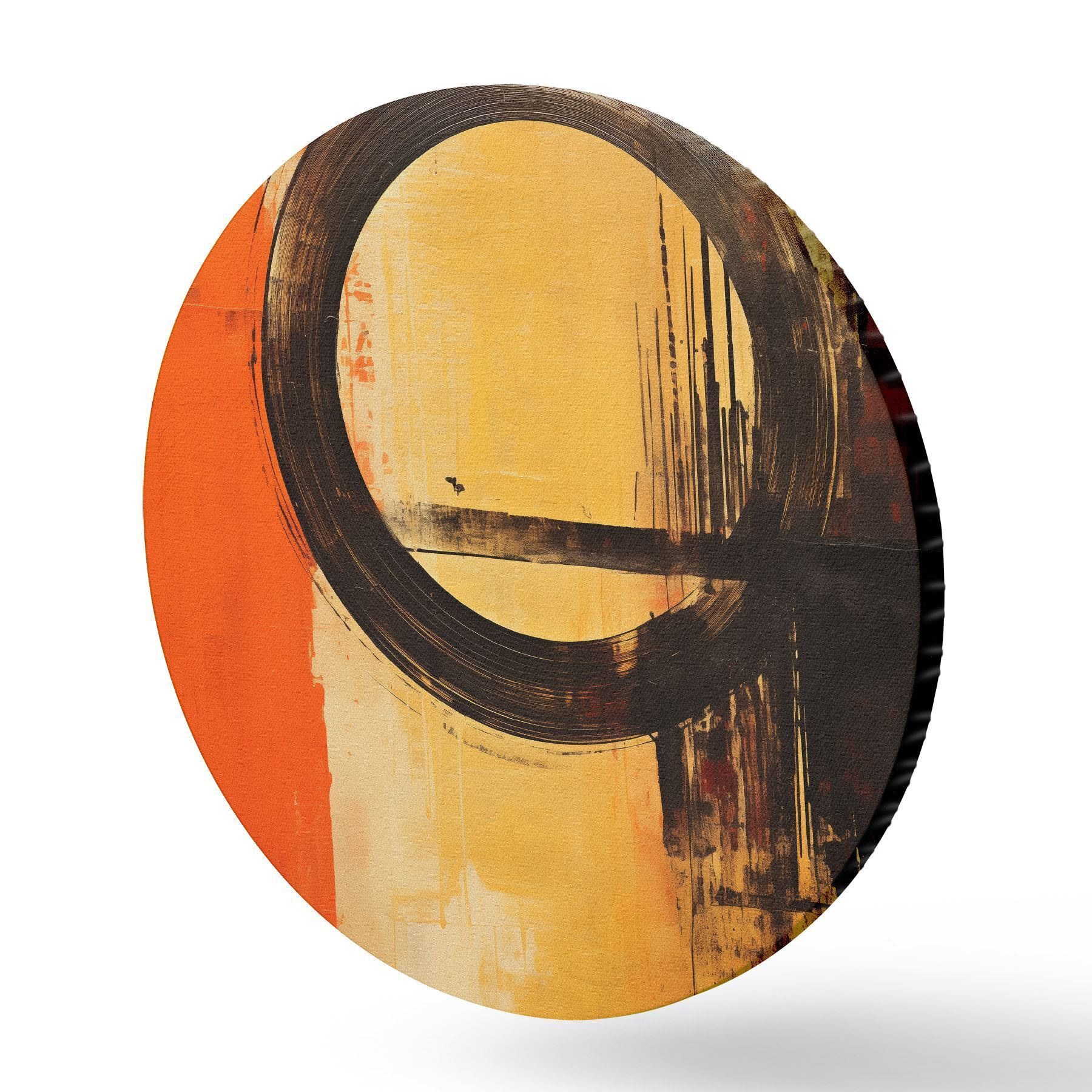 Ronde schilderijen Abstract met een zwarte ring op een terracotta-zandkleurige achtergrond Nr r46529