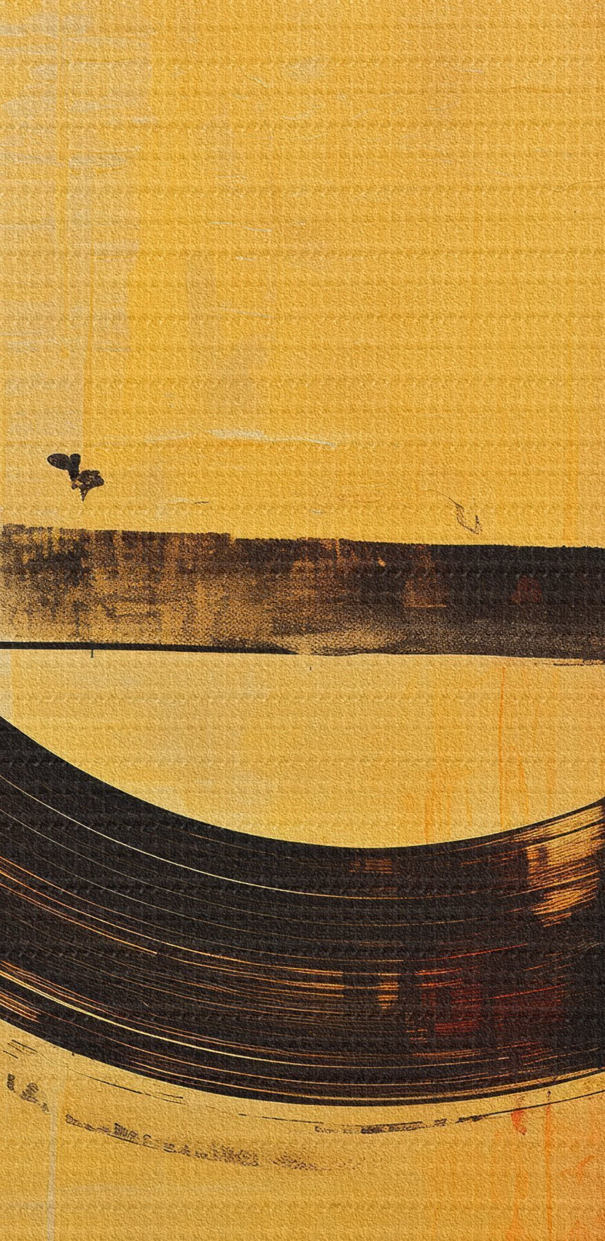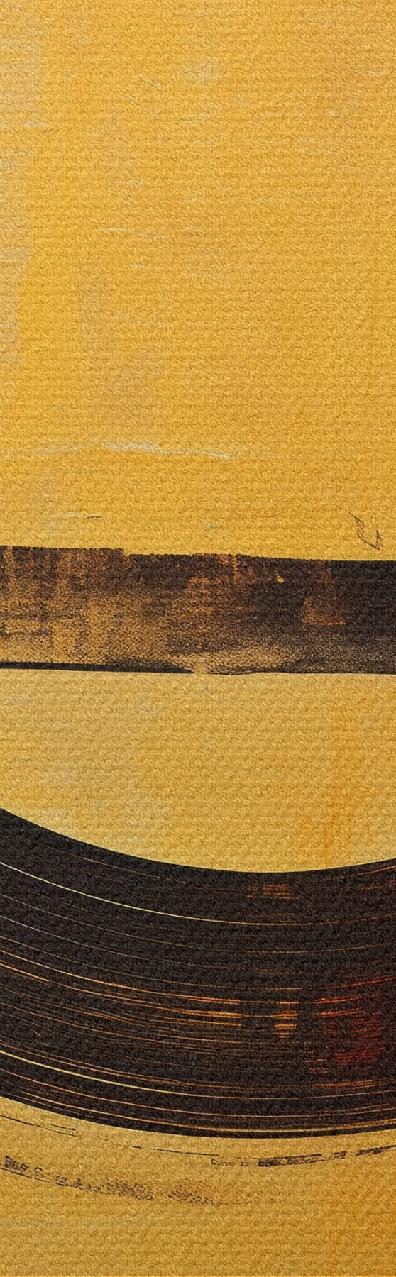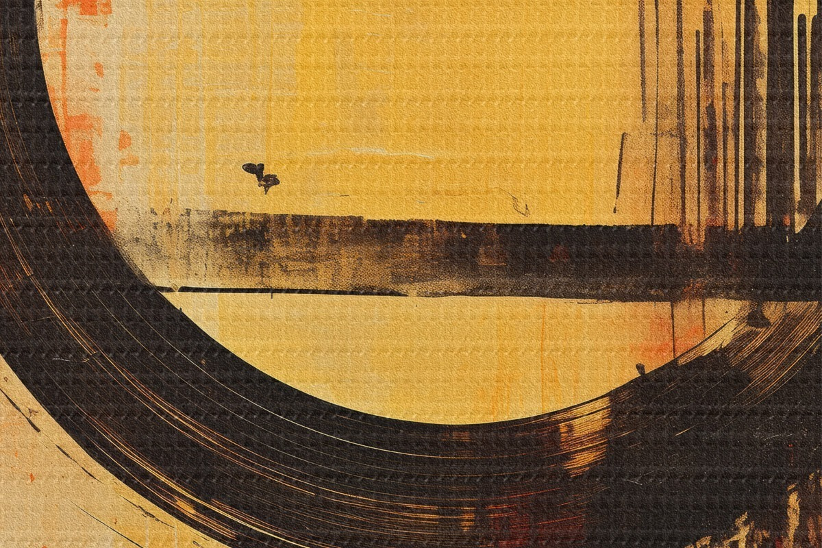 Ronde schilderijen Abstract met een zwarte ring op een terracotta-zandkleurige achtergrond Nr r46529